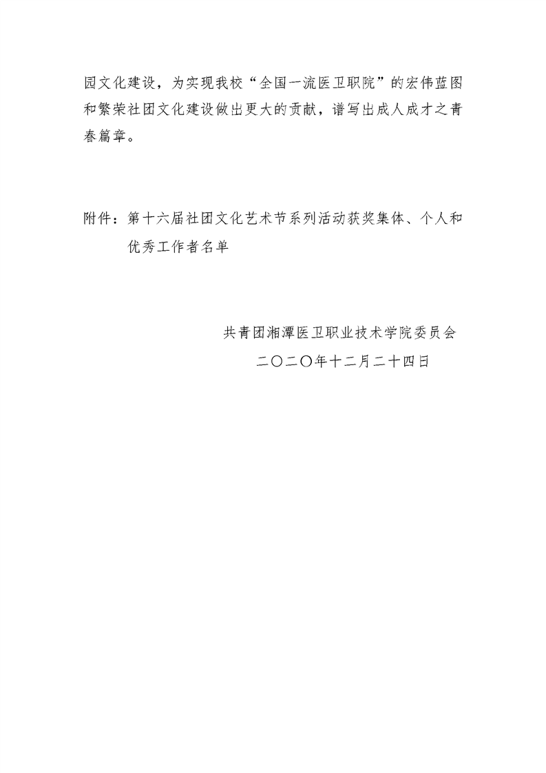 潭医卫职院团发[2020]33号:关于表彰半岛(中国)2020年第十六届社团文化艺术节系