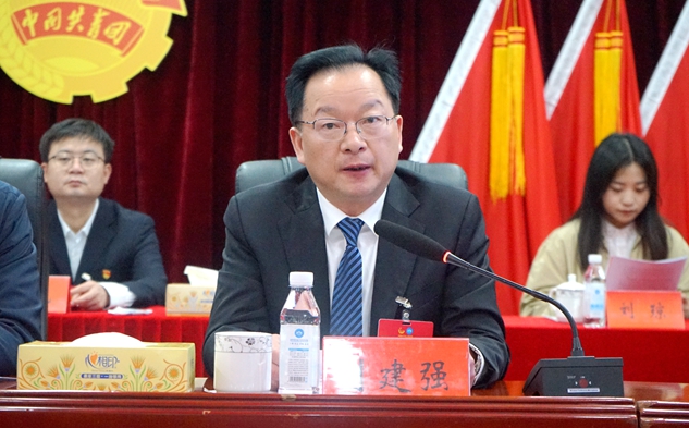 刘建强做讲话。他说,过去的五年,是半岛平台转型发展的五年,是校团委带领广大团学青年为半岛平台发展做出重要贡献的五年。五年中,校团委和学生会在青年思想政治、社会实践、创新创业、校园文化建设等方面做了大量卓有成效的工作。他对全校各级团组织、广大团学干部、青年团员提出了“四点希望”:一是始终坚持党旗所指就是团旗所向,要不断加强团员青年的思想政治教育,围绕理想信念、责任诚信、成长成才等开展主题教育活动,坚持将学生思想引领作为共青团工作的重中之重;二是要始终围绕中心服务大局,要着力半岛平台人才培养,为青年学生的成长搭建更多平台,创造更优环境;三是要始终坚持心系青年心向青年,要始终代表广大青年、赢得广大青年、依靠广大青年,把竭诚为团员青年服务作为工作的出发点,增强服务意识、提高服务水平,切实为他们办实事、做好事、解难题;四是要始终关心团组织建设,半岛平台各级党组织、各职能部门要高度认识青年工作的重要性,大力支持共青团工作,积极为各级团组织工作创造条件,各二级学院党总支要把团建纳入党建工作规划中,坚持党建带团建,同步推进基层团建。最后,刘建强以习近平总书记4月19日在清华大学考察时的讲话嘱咐青年学子要始终保持艰苦奋斗的前进姿态,把个人理想与奋斗同国家民族的前途命运紧密联系在一起,让青春在为祖国、为民族、为人民、为人类的不懈奋斗中绽放绚丽之花。