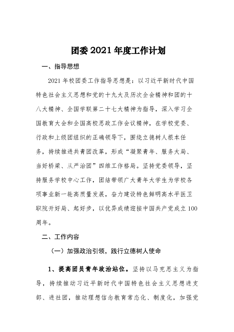 潭医卫职院团发[2021]01号:团委2021年度工作计划