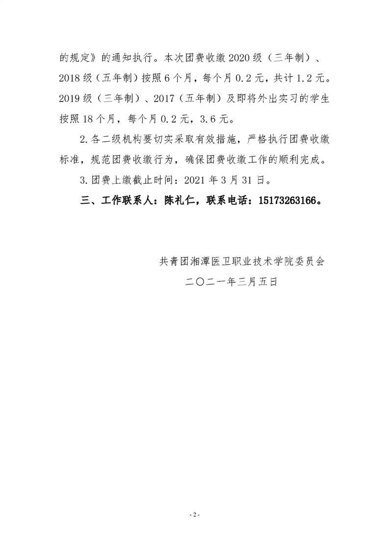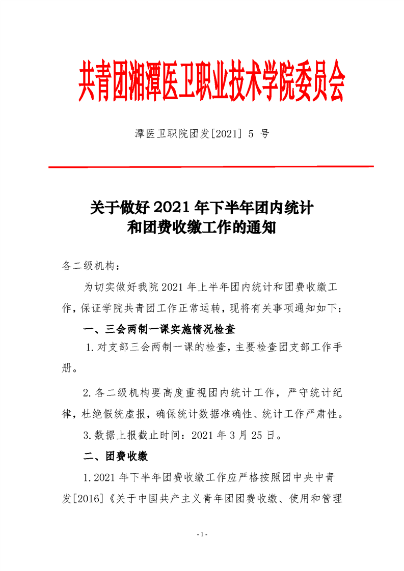 潭医卫职院团发[2021]05号:关于做好2021年下半年团内统计和团费收缴工作的通知