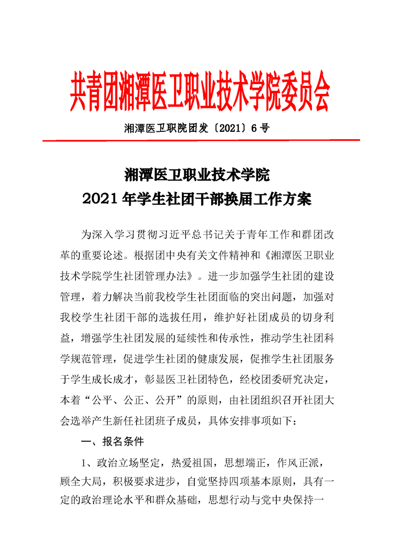 潭医卫职院团发[2021]06号:半岛(中国)2021年社团干部换届工作方案