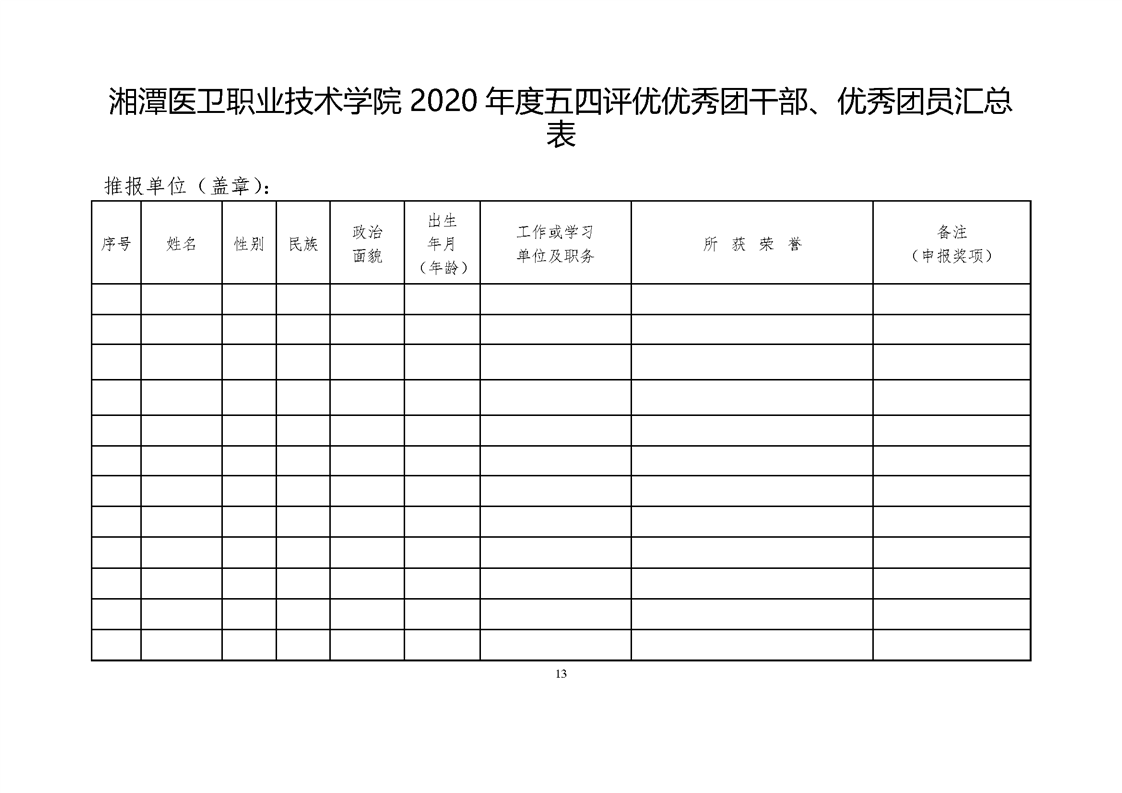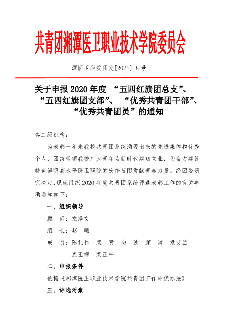 潭医卫职院团发[2021]08号:关于申报2020年度“五四红旗团总支”、“五四红旗团支部”、“优“