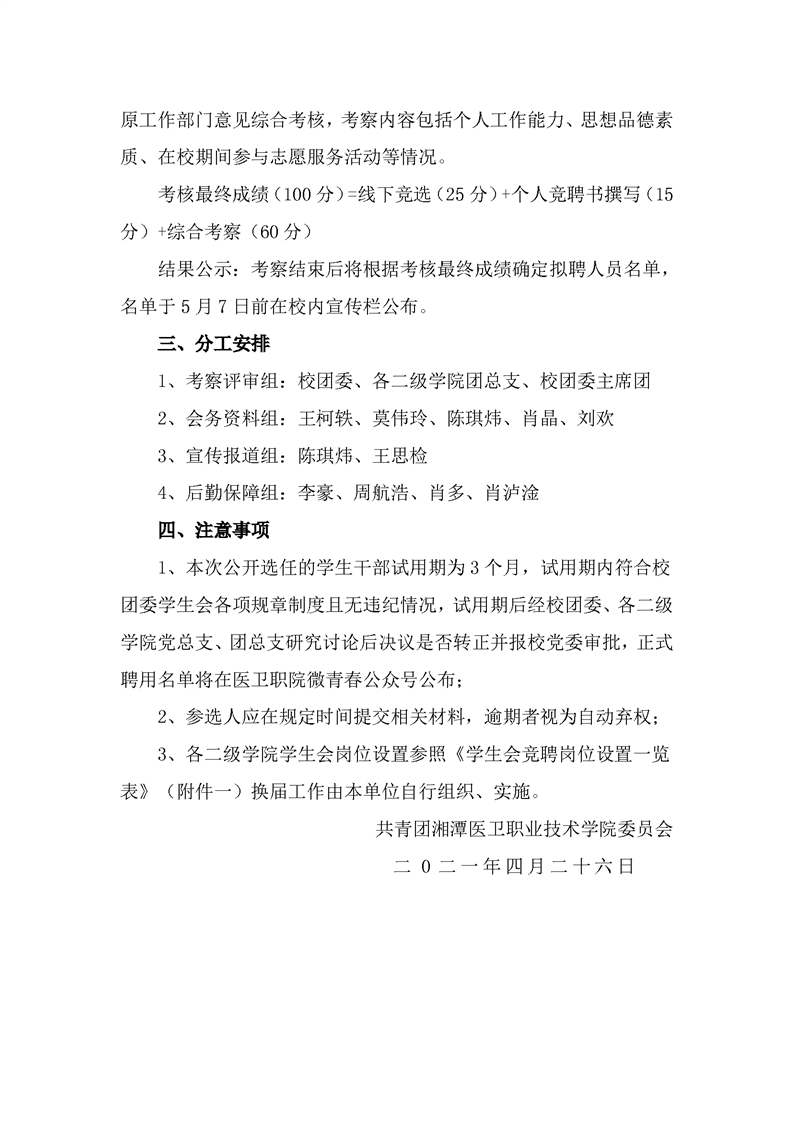 潭医卫职院团发[2021]09号:半岛(中国)校团委学生会2021年学生干部换届方案