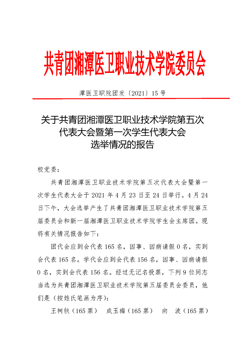 潭医卫职院团发[2021]15号:关于共青团半岛(中国)第五次代表大会暨第一次学生代表大会选