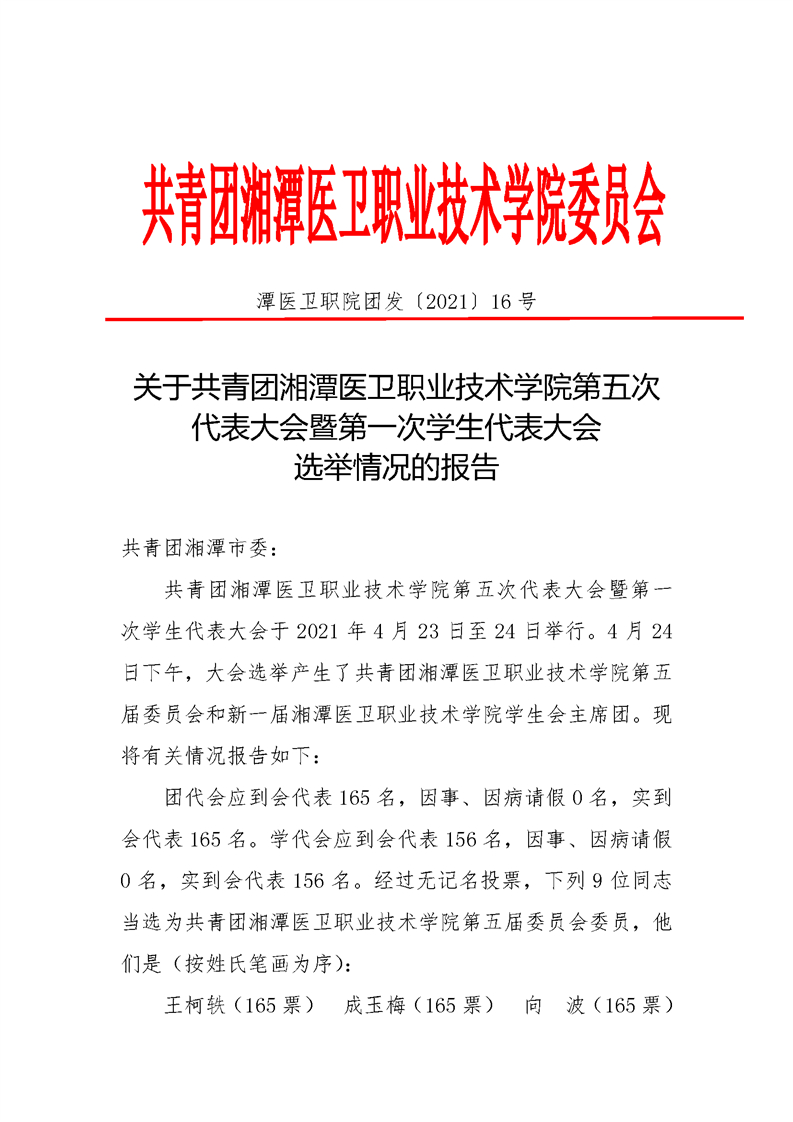 潭医卫职院团发[2021]16号:关于共青团半岛(中国)第五次代表大会暨第一次学生代表大会选