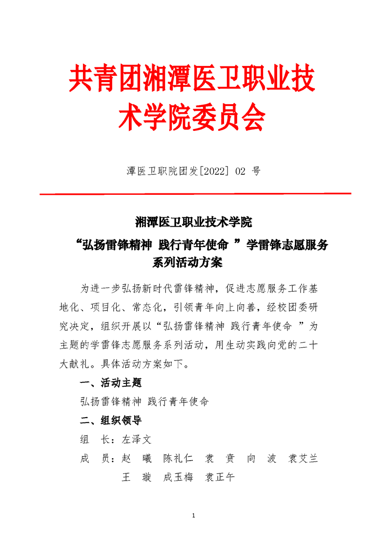 潭医卫职院团发[2022]02号:关于开展2022年“传承雷锋精神 弘扬时代新风 ”学雷锋志愿活动