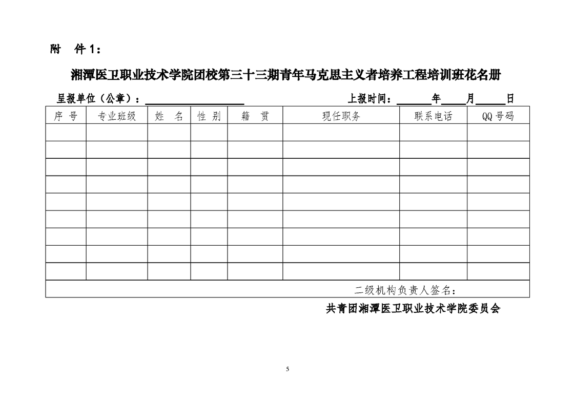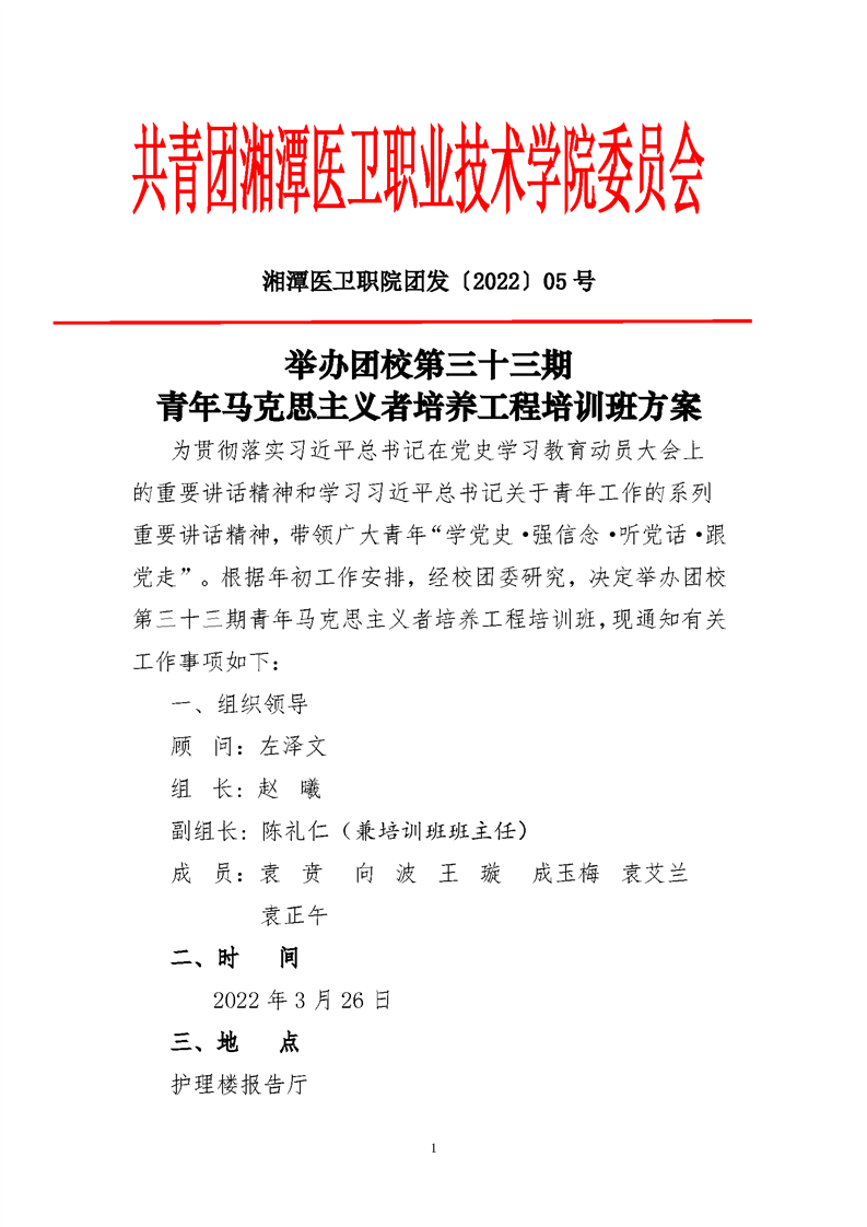 潭医卫职院团发[2022]05号:关于举办团校第三十三期青年马克思主义者培养工程培训班的通知(改)