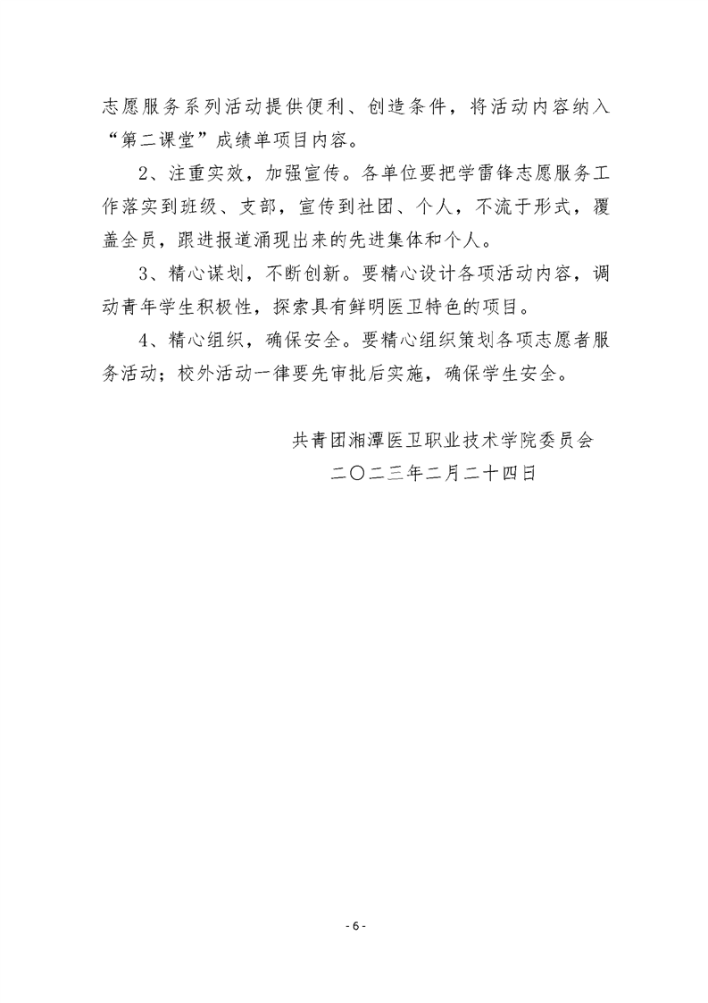 潭医卫职院团发[2023]02号关于开展2023年“传承雷锋精神 弘扬时代新风 ”学雷锋志愿