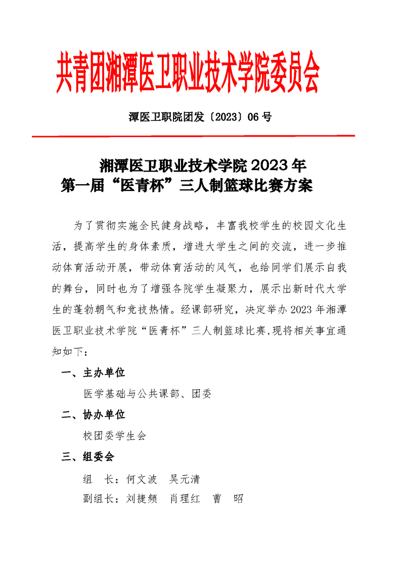 潭医卫职院团发[2023]06号:半岛(中国)第一届“医青杯”三人制篮球比赛