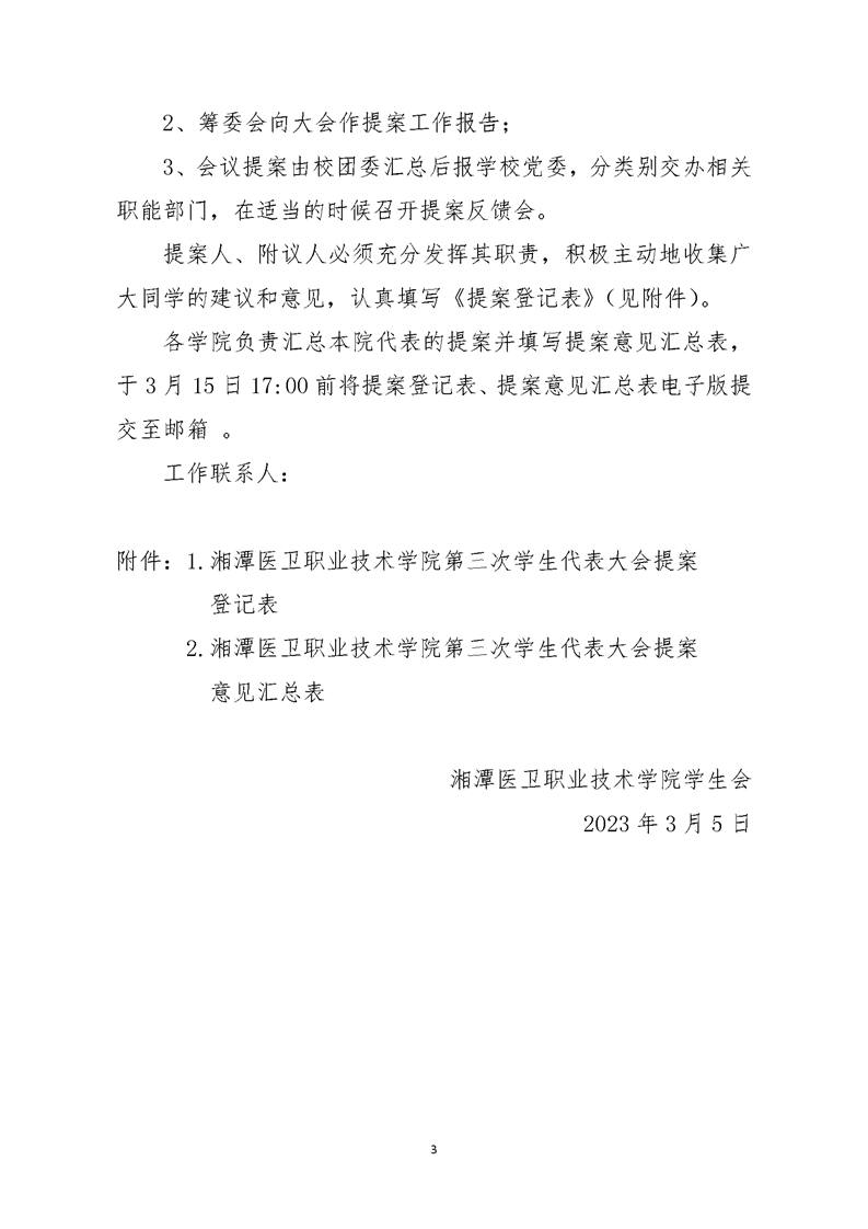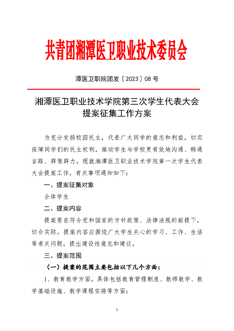 潭医卫职院团发[2023]08号:半岛(中国)第三次学生代表大会提案征集工作方案