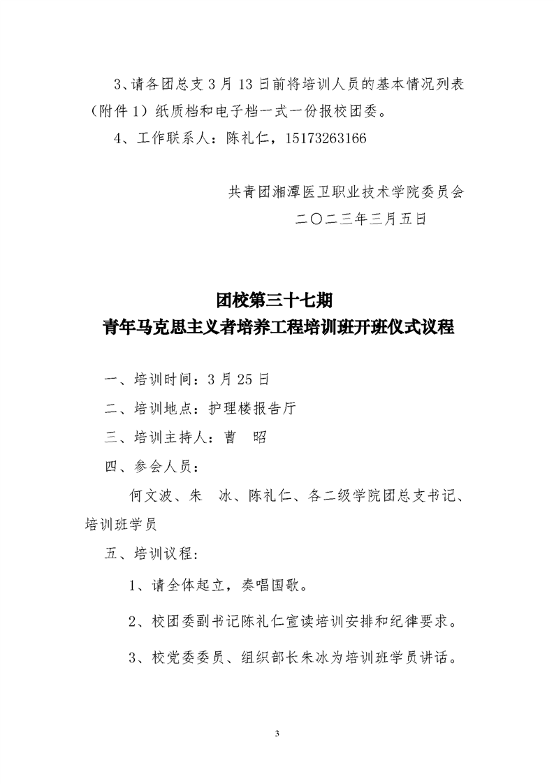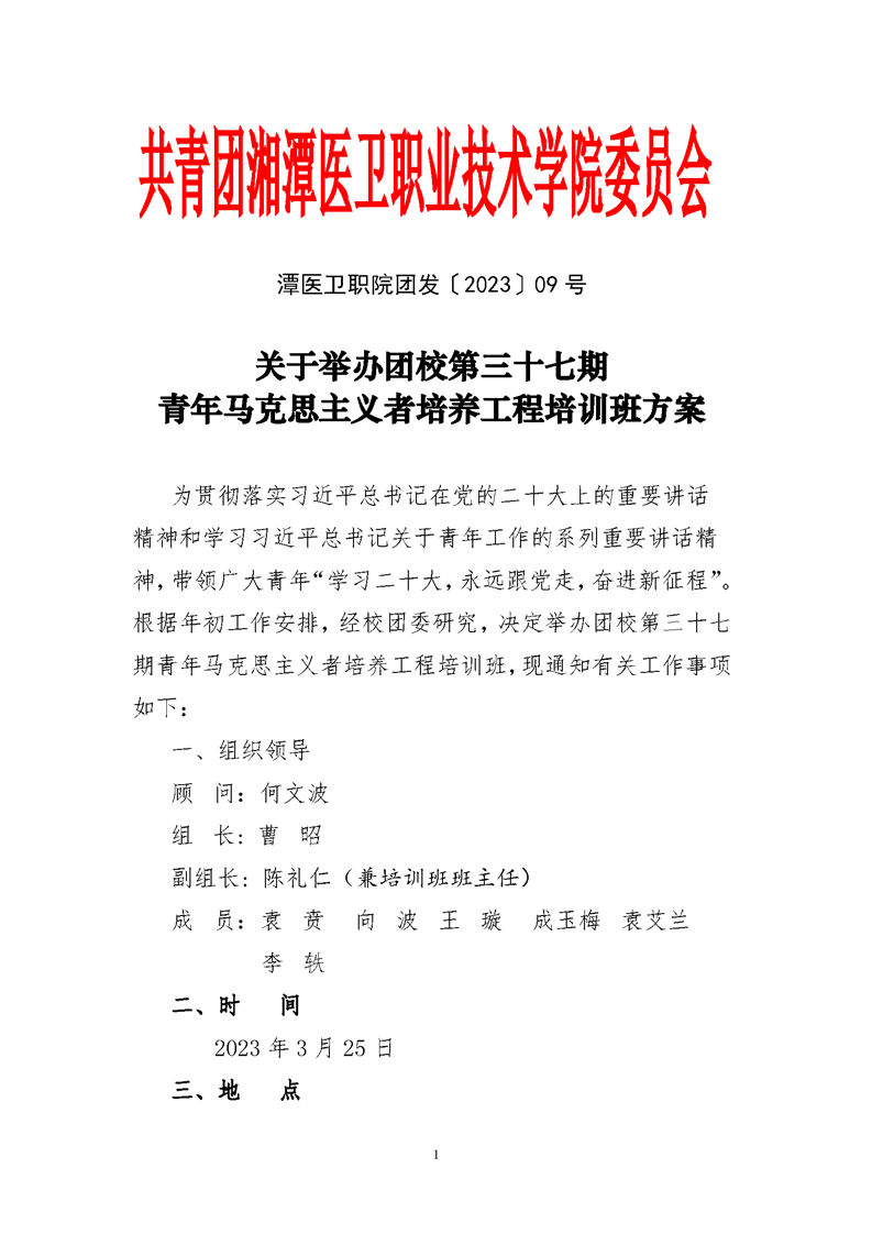 潭医卫职院团发[2023]09号:关于举办团校第三十七期青年马克思主义者培养工程培训班的通知