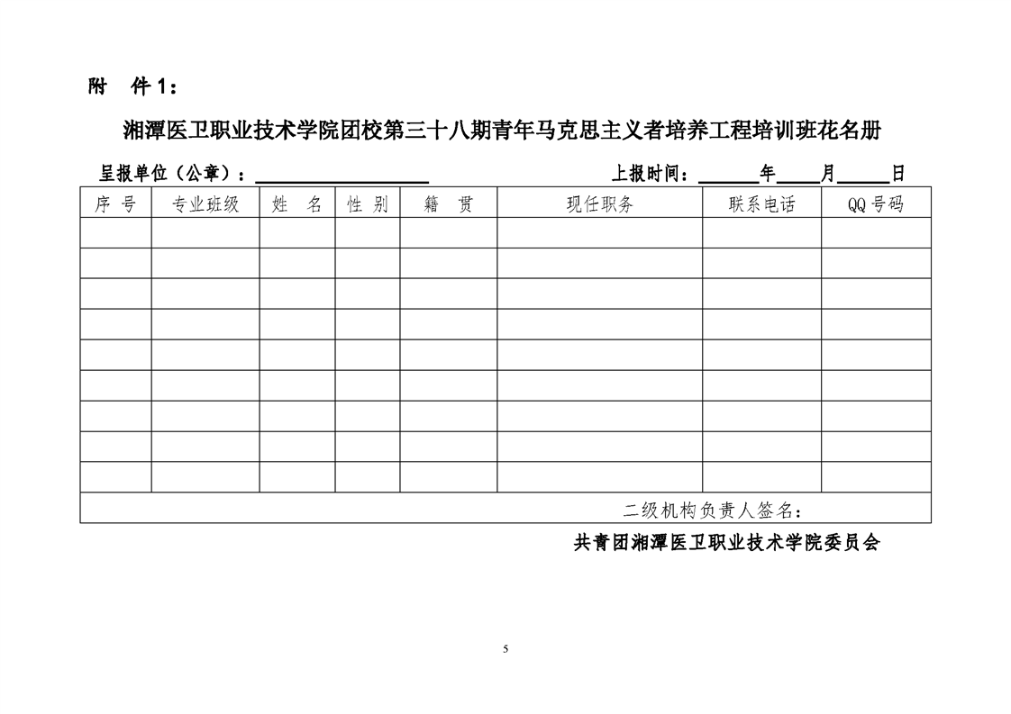 潭医卫职院团发[2023]16号:关于举办团校第三十八期青年马克思主义者培养工程培训班的通知