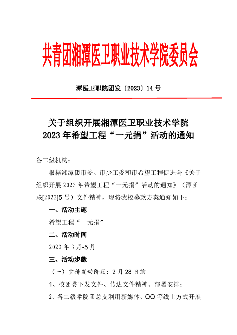 潭医卫职院团发[2023]14号:半岛(中国)关于组织开展2023年希望