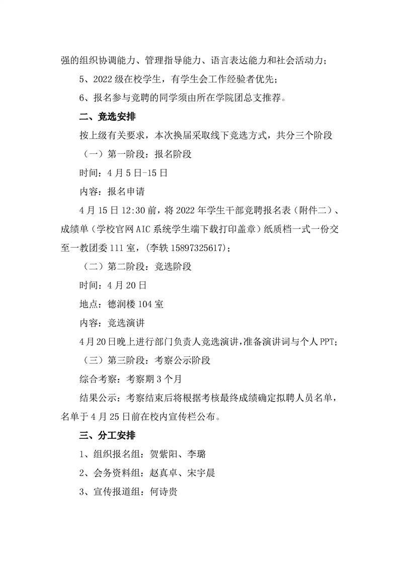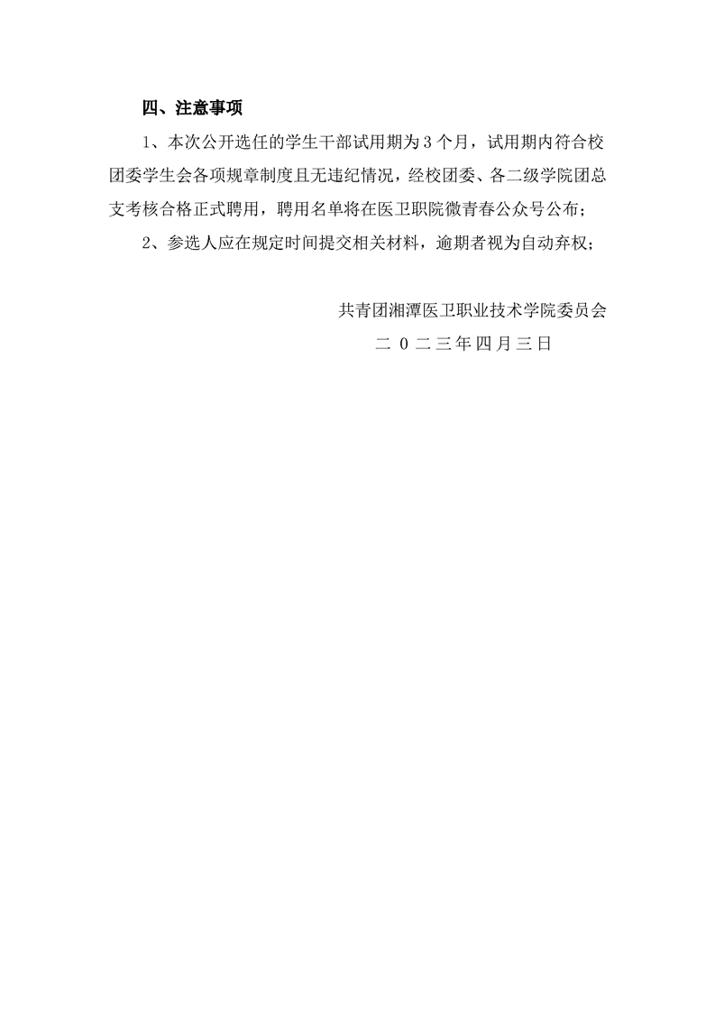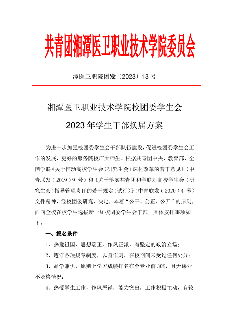 潭医卫职院团发[2023]13号:半岛(中国)校团委学生会2023年学生干部换届方案
