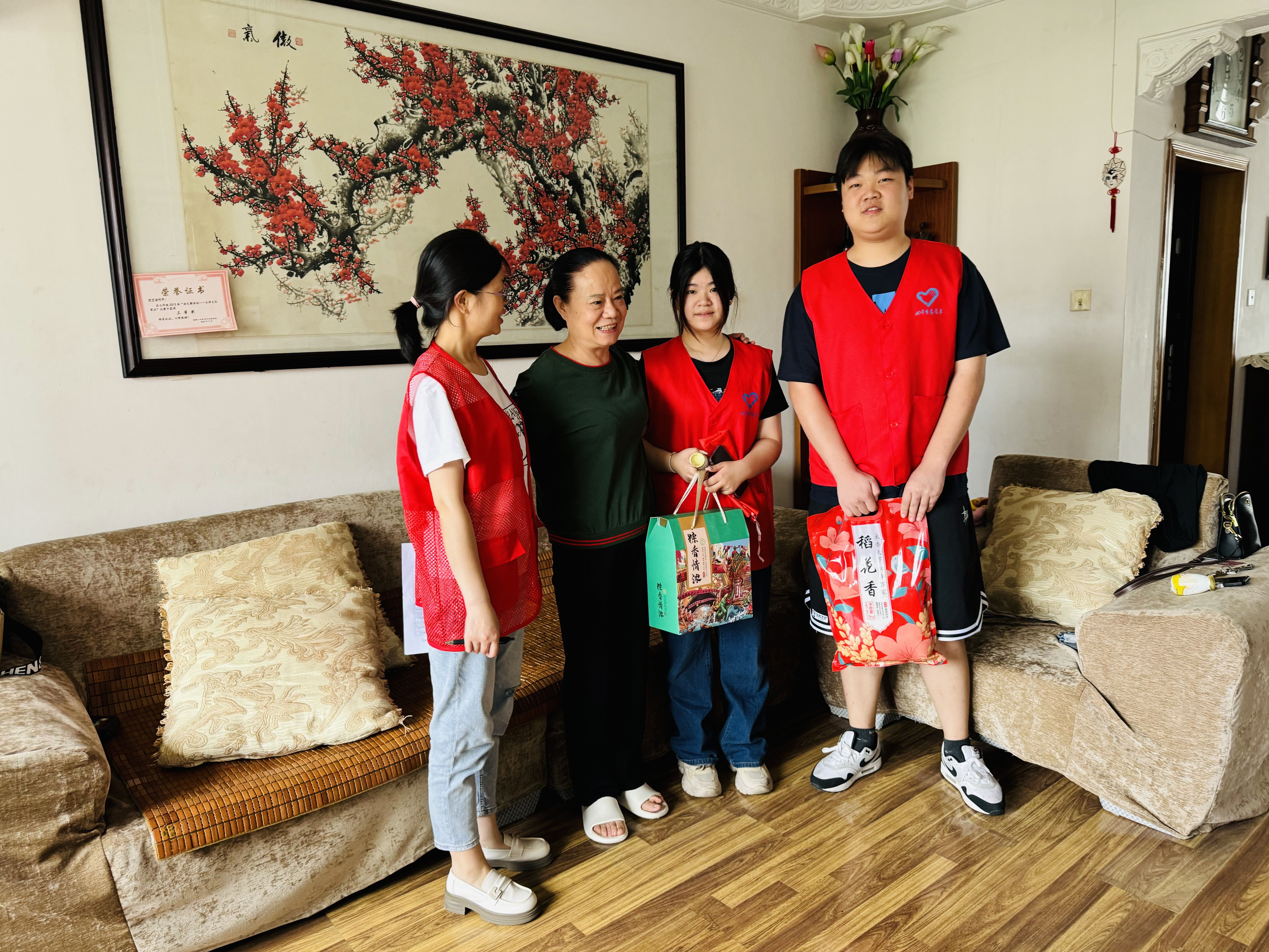 为进一步继承和弘扬中华民族优秀传统文化,营造浓厚的节日氛围,使盘龙社区的老人感受到节日的快乐和氛围。6月7日上午,我院医暖童心社社团成员和中特社社团成员在老师的带领下,前往盘龙社区,为社区居民送去了节日礼物和问候,让他们在情感上、心灵上得到了极大的安慰。
