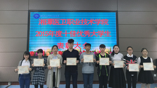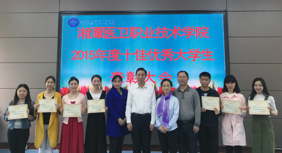 4月14日,我校2015年度“十佳优秀大学生”评选活动圆满落幕。护理学院龚庆新等十位品学兼优的同学获得“十佳优秀大学生”荣誉称号,贺雄等十名优秀学生获评2015年度“十佳优秀大学生”提名奖。校党委书记杨南南、纪委书记王林珠出席表彰大会并颁奖。