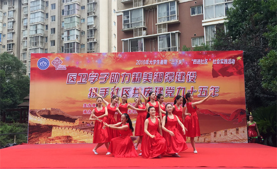 活动中,健康咨询服务组、中医保健组、口腔健康组的同学们为现场群众测量血压、血糖,进行保健按摩,同时宣传各种保健常识,加强医学知识的普及;文艺小分队成员和社区老年人舞蹈队共同为观众们带来了一场精心编排的文艺汇演,12个歌舞曲艺节目赢得了阵阵热烈掌声;创建文明城市调研组的成员则积极走访,向群众发放问卷,调查和宣讲湘潭市创建全国文明城市的有关知识。