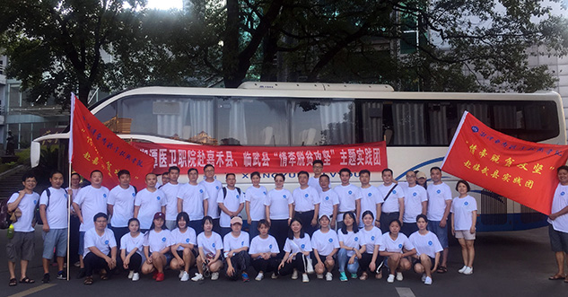 7月26日7点,我校参加暑期大学生“情牵脱贫攻坚”主题实践活动的师生乘坐大巴奔赴嘉禾、临武两县,开展为期十五天的扶贫调研活动。校党委书记刘建强在活动启动仪式上为两县实践队伍授旗,并勉励师生用实际行动为贫困地区群众造福。校长廖晓燕看望慰问全体师生,并为队伍送行。