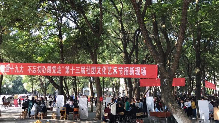10月31日、11月1日两天,河东校区樟树林和河西校区篮球场人潮涌动、气氛热烈。我校第十三届社团文化节开幕式暨现场招新隆重举行。校党委副书记左泽文现场指导招新工作。全校专兼职团干部和学生代表300余人参加了开幕式。