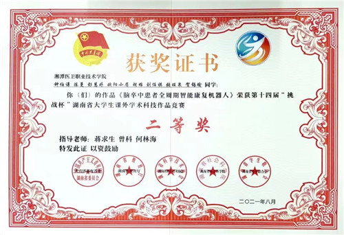 十四届挑战杯湖南省大学生课外学术科技作品二等奖