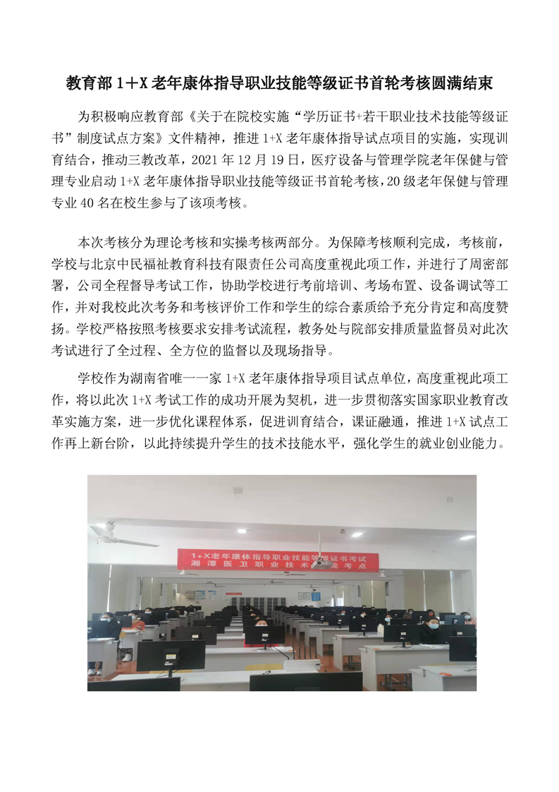 教育部1+X老年康体指导职业技能等级证书首轮考核圆满结束