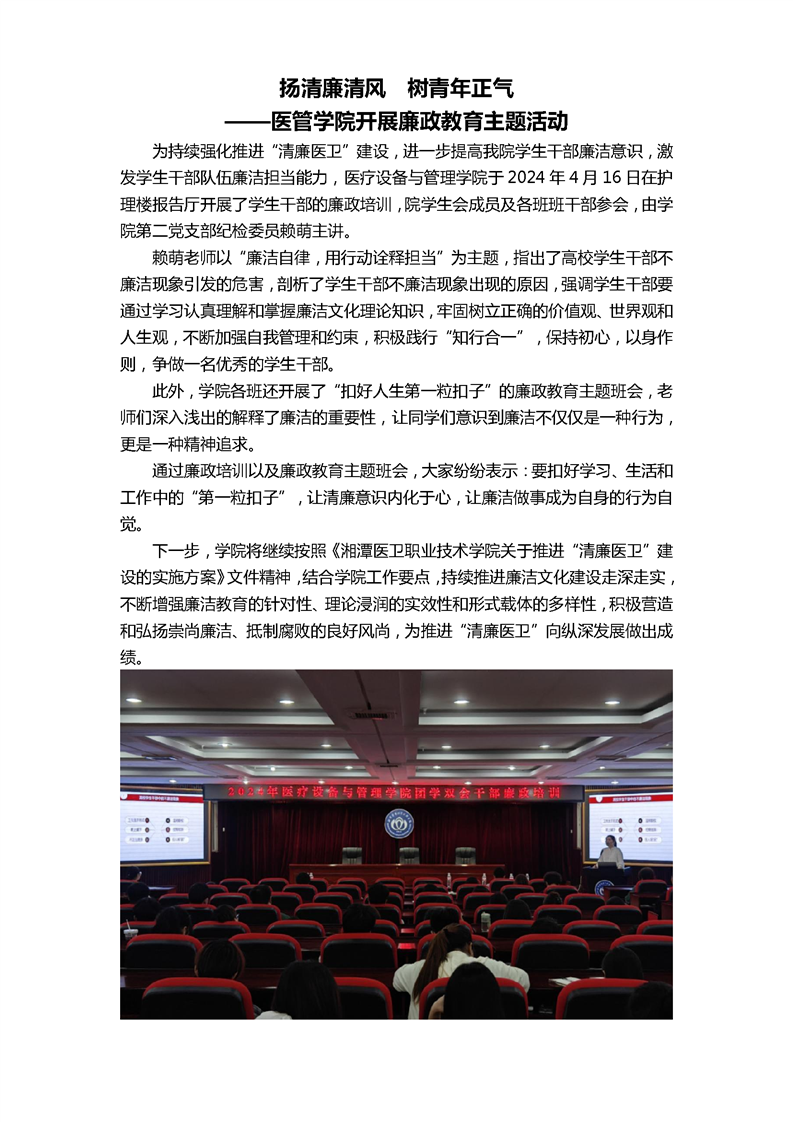医管学院开展廉政教育主题活动