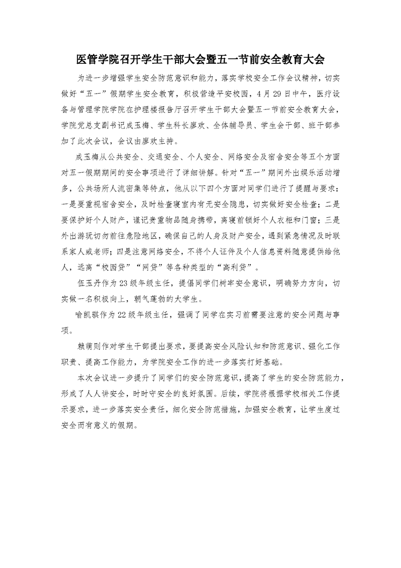 医管学院召开学生干部大会暨五一节前安全教育大会