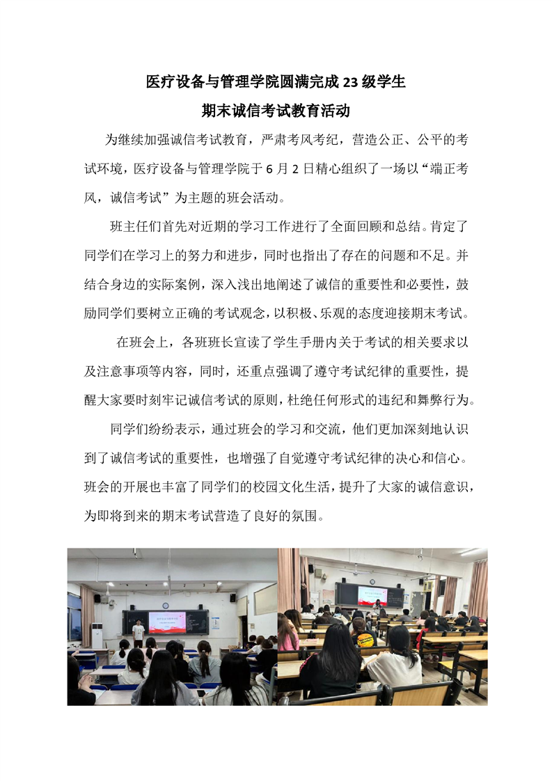 医疗设备与管理学院圆满完成23级期末诚信考试教育活动
