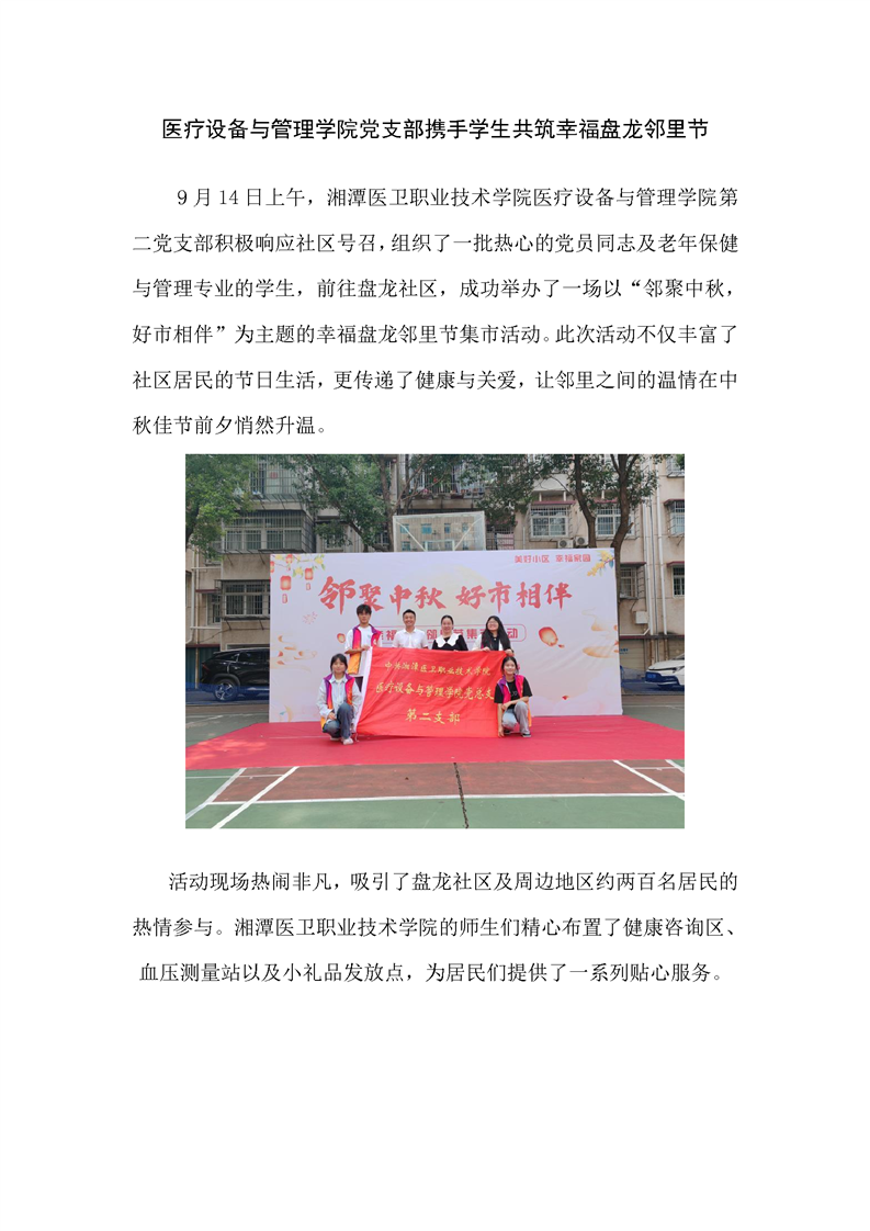 医疗设备与管理学院党支部携手学生共筑幸福盘龙邻里节