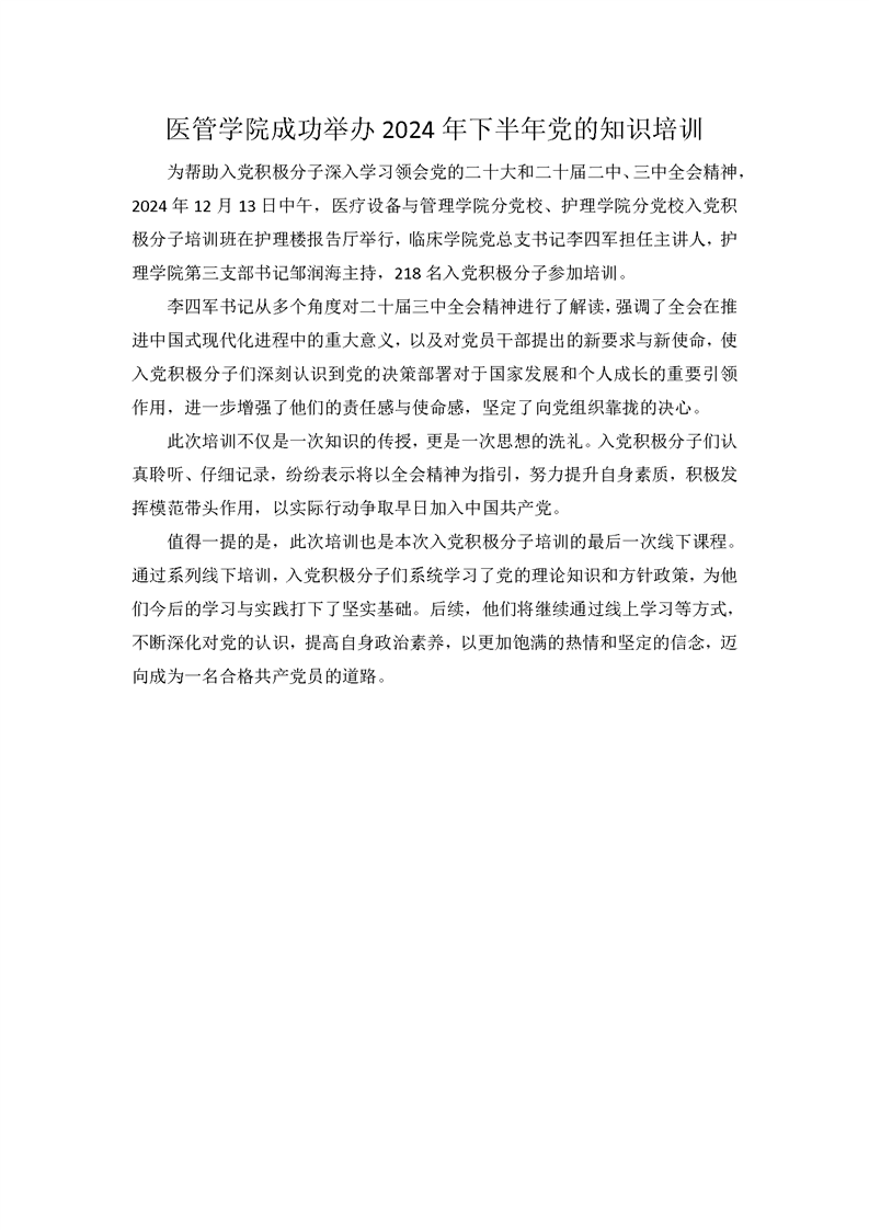 医管学院成功举办2024年下半年党的知识培训