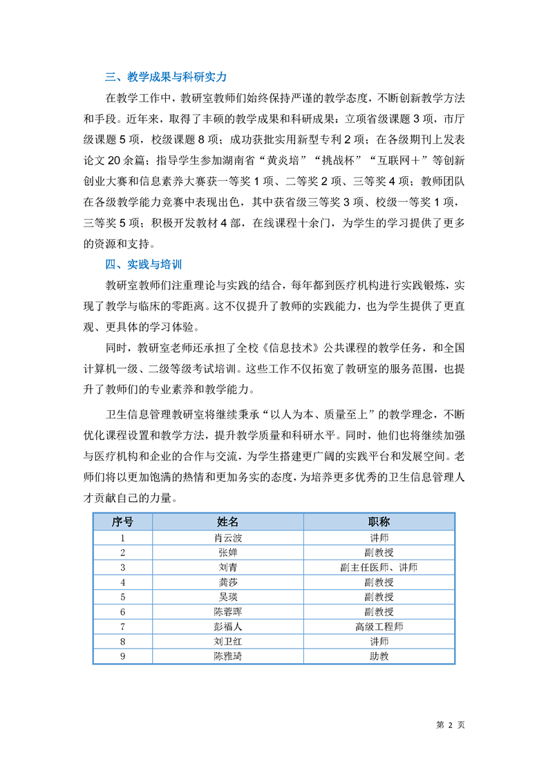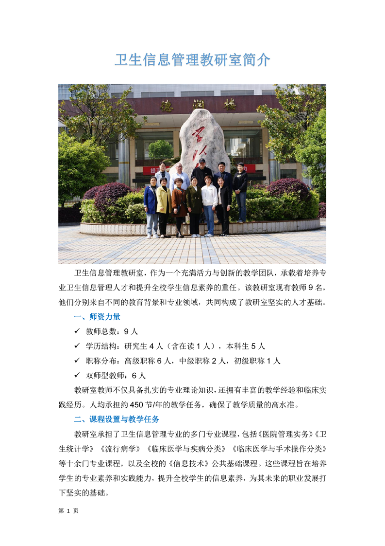 卫生信息管理教研室师资