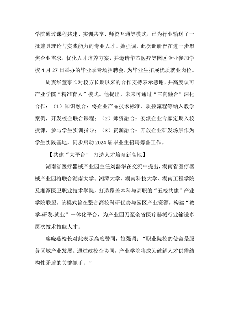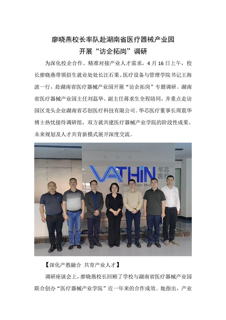 廖晓燕校长率队赴湖南省医疗器械产业园开展访企拓岗调研