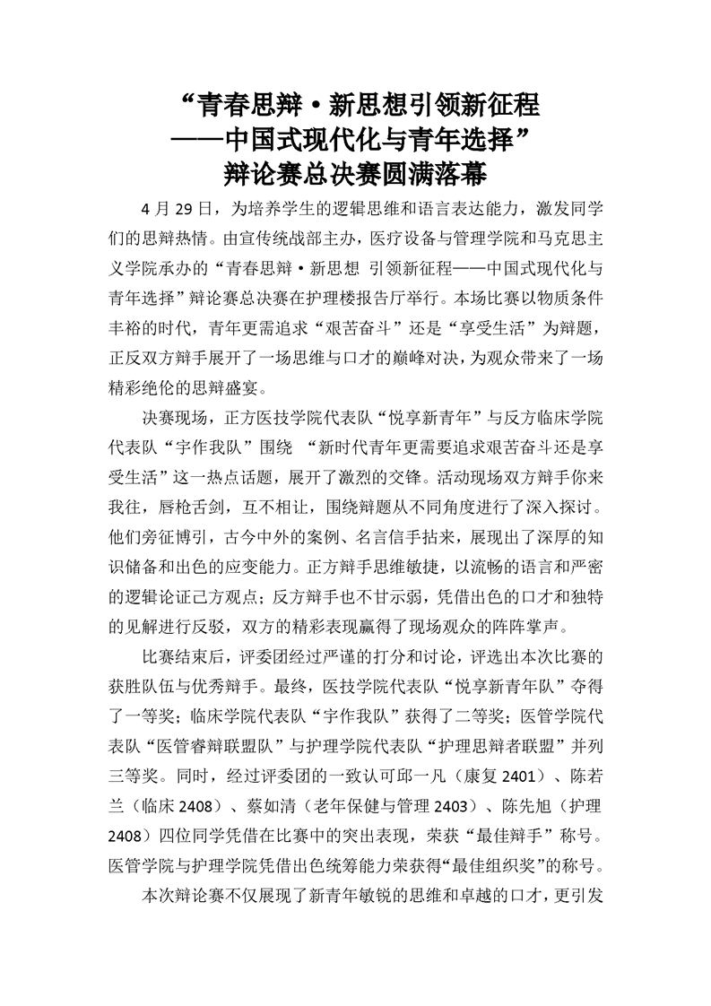 “青春思辩·新思想引领新征程 ——中国式现代化与青年选择” 辩论赛总决赛圆满落幕
