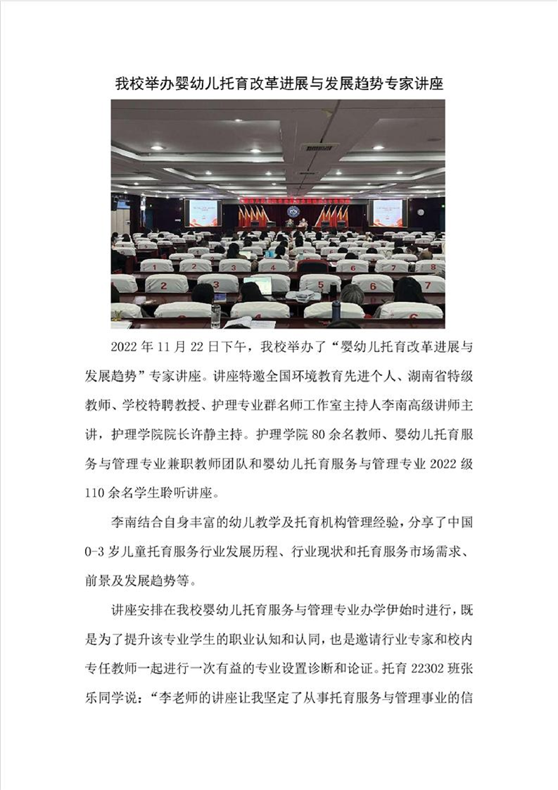 我校举办婴幼儿托育改革进展与发展趋势专家讲座