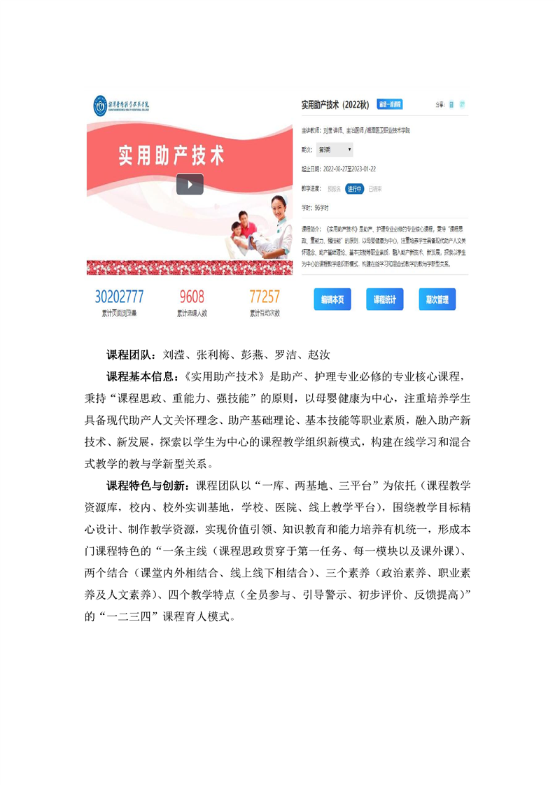 省级在线精品课程:《实用助产技术》