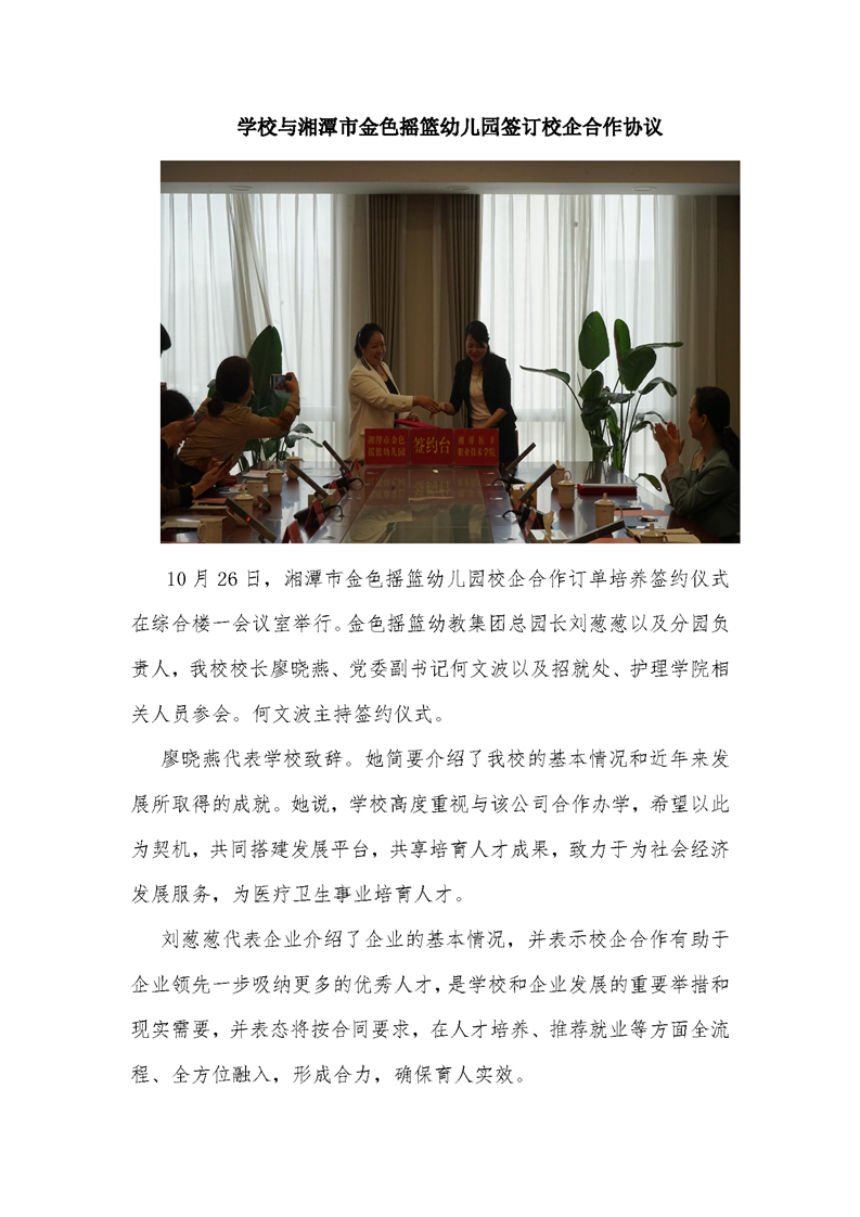 半岛平台与湘潭市金色摇篮幼儿园签订校企合作协议