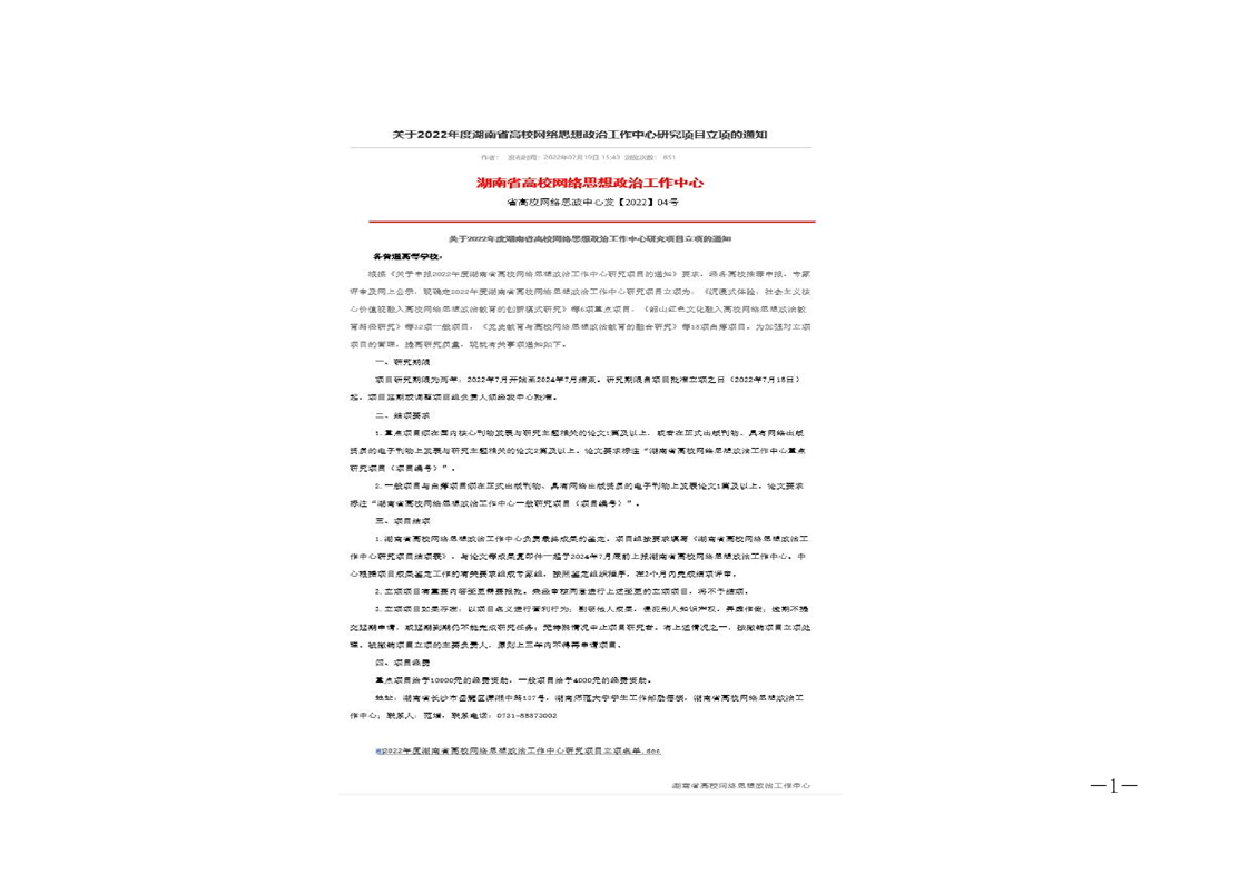我院立项2022年度湖南省高校网络思想政治工作中心研究项目1项
