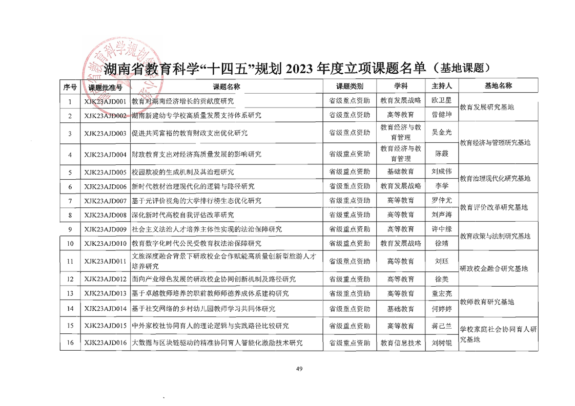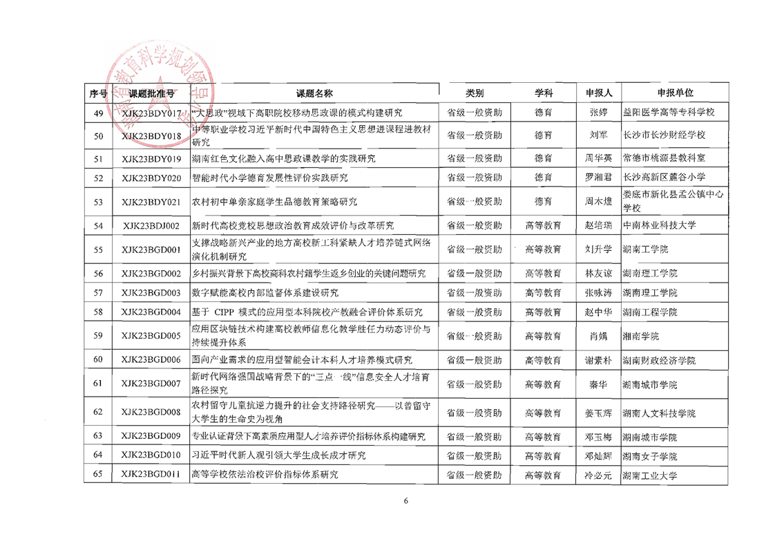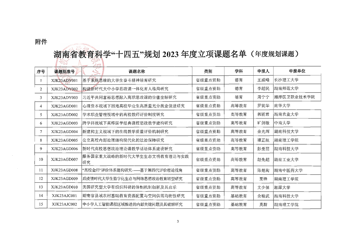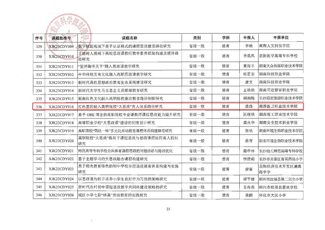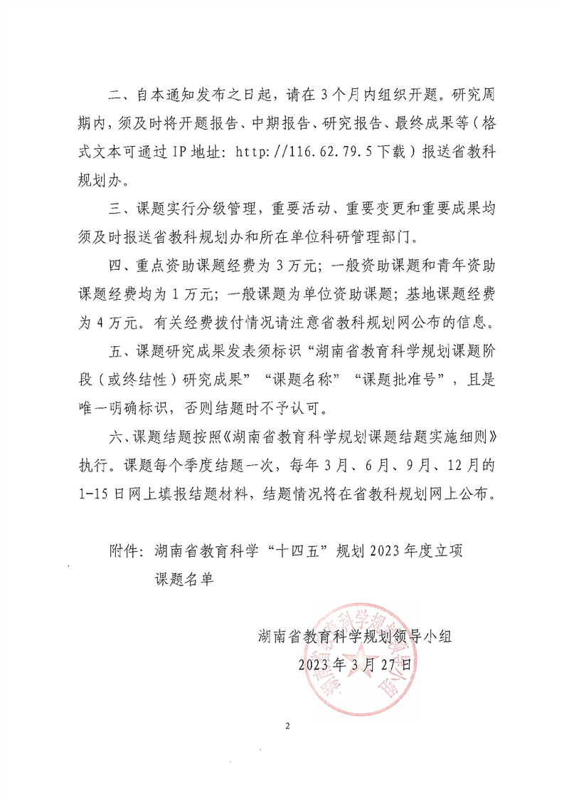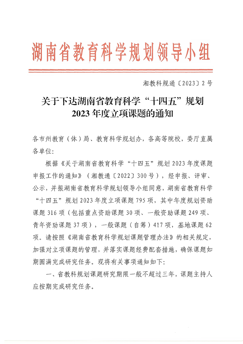 我院立项湖南省教育科学“十四五”规划2023年度课题2项