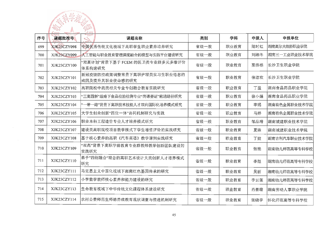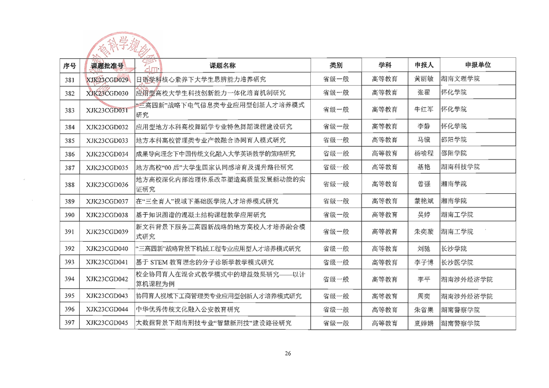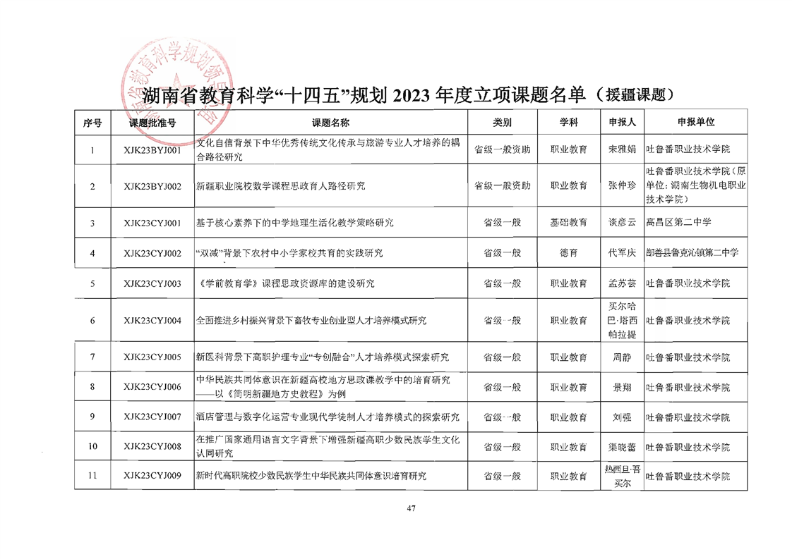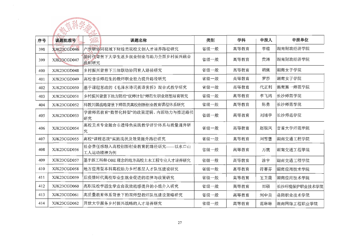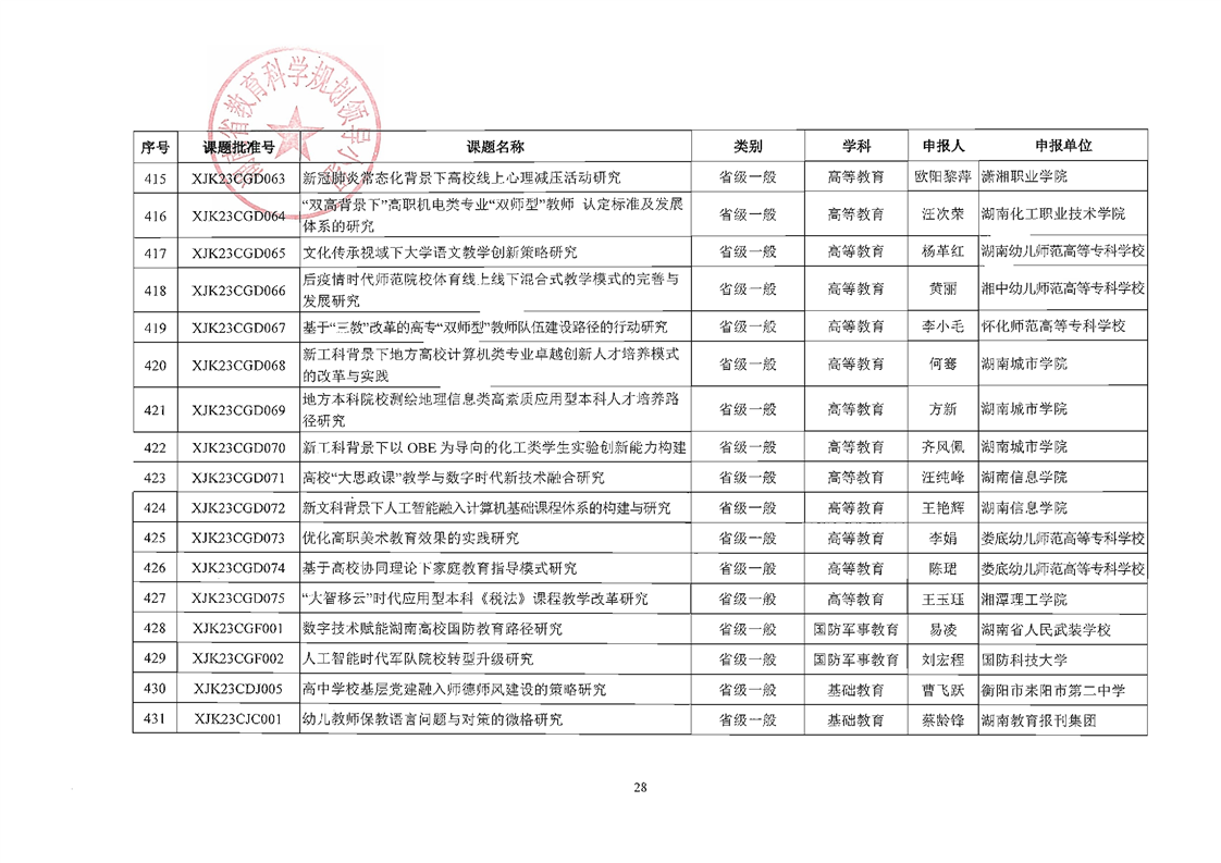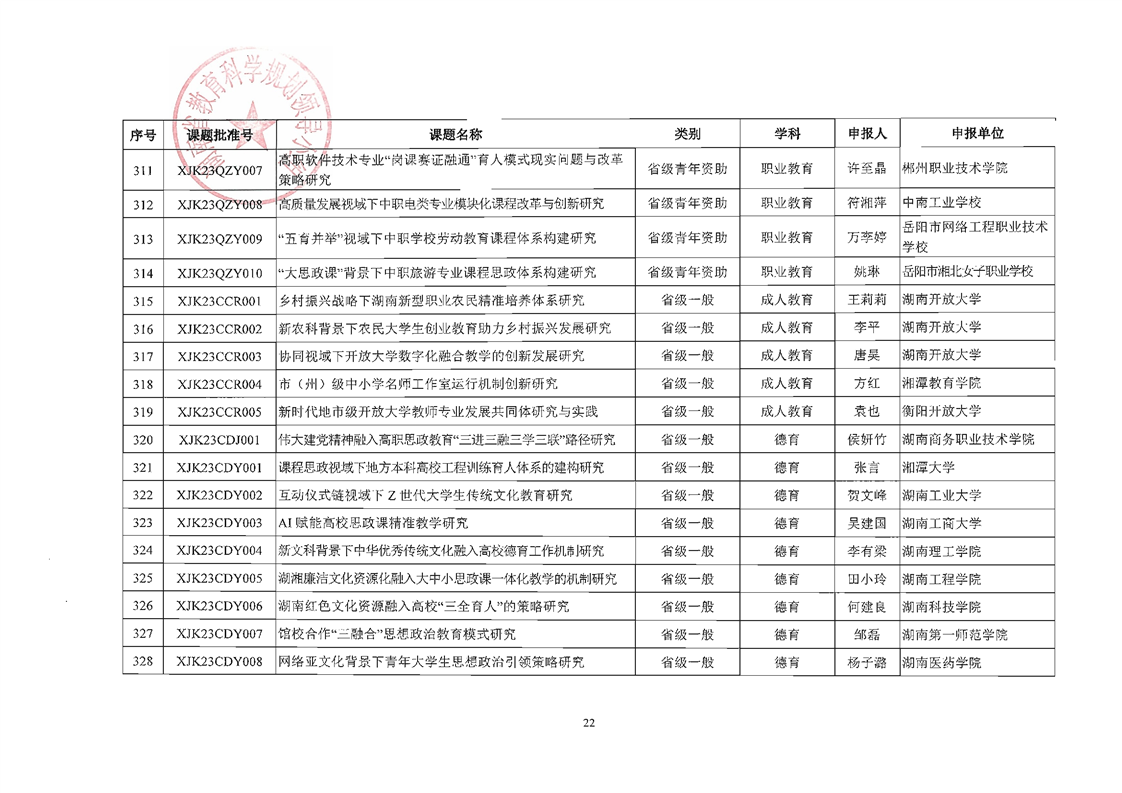我院立项湖南省教育科学“十四五”规划2023年度课题2项