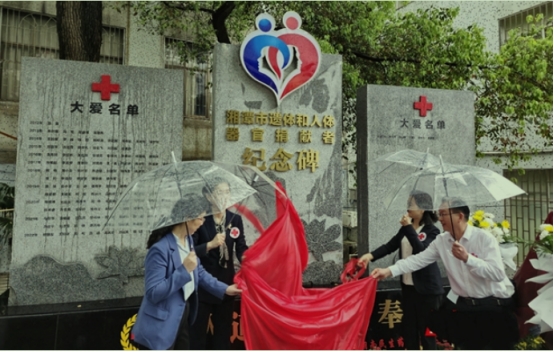 4月3日,“生命礼赞 ·大爱永生”湘潭市遗体和人体器官捐献者纪念碑落成仪式暨缅怀纪念活动在我校举 行。湘潭市副市长、市红十字会会长周艳希 ,省红十字会党组成员、副会长邱梦丹 ,省人体器官捐献管理中心主任 姚賽兰 ,我校党委书记刘建强 ,市卫健委副主任卢可佳;我校副校长刘晖 ,市红十字会副会长颜曼琳 ,湖南重药控 股集团总经理曾春辉 ,湘潭爱尔眼科医院经理夏茂芳等出席。以及器官捐献者家属代表 ,湘雅附二医院器官获取中心代表,器官捐献协调员代表,县市区红十字会工作者、志愿者代表等参加。
