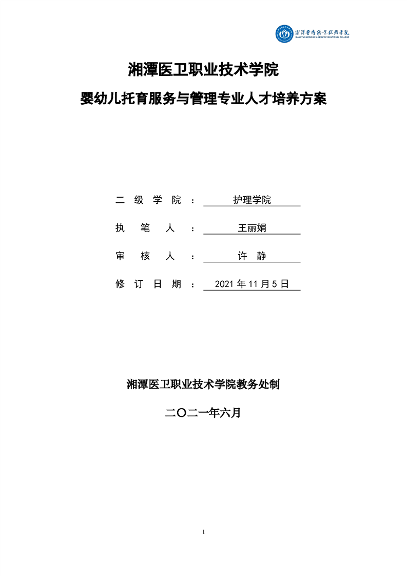 2022级婴幼儿托育服务与管理专业人才培养方案