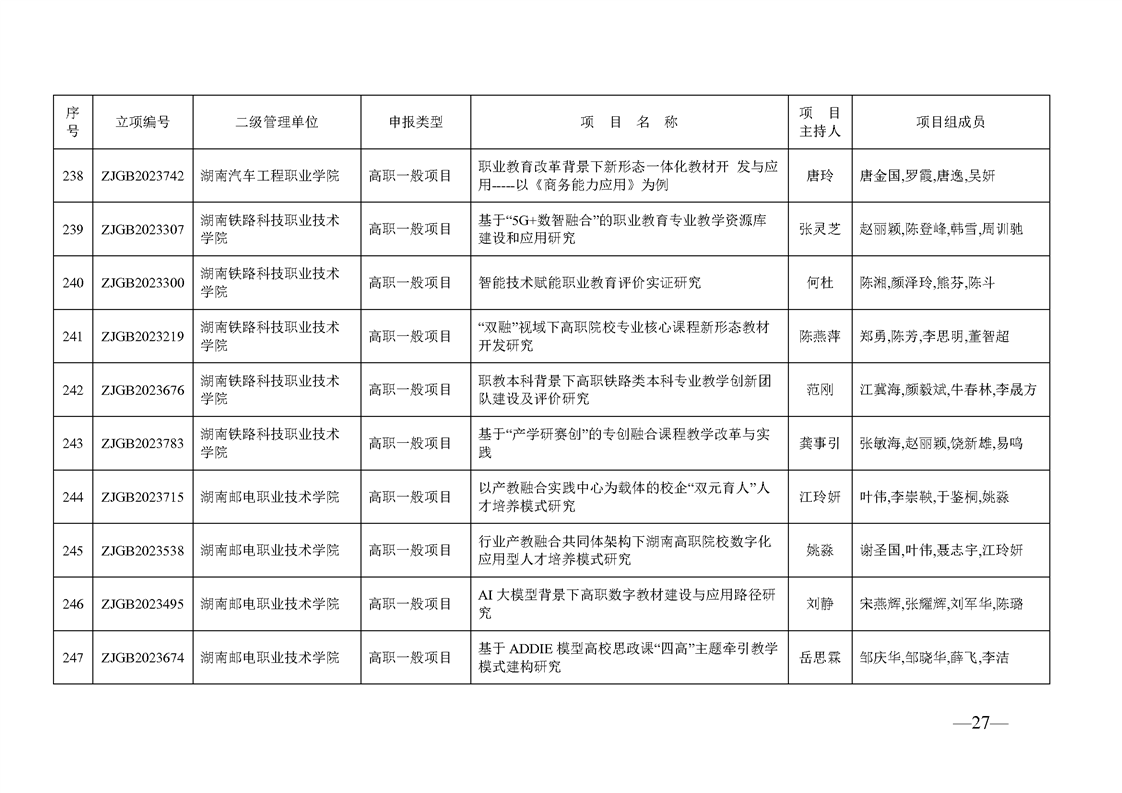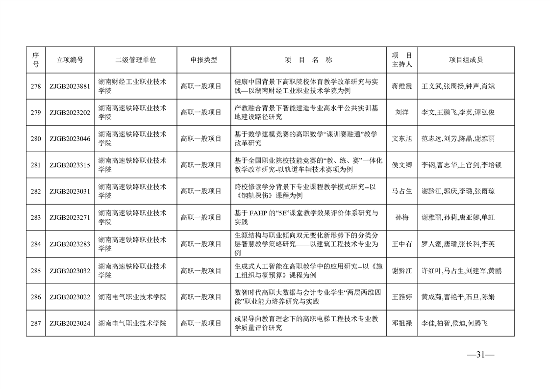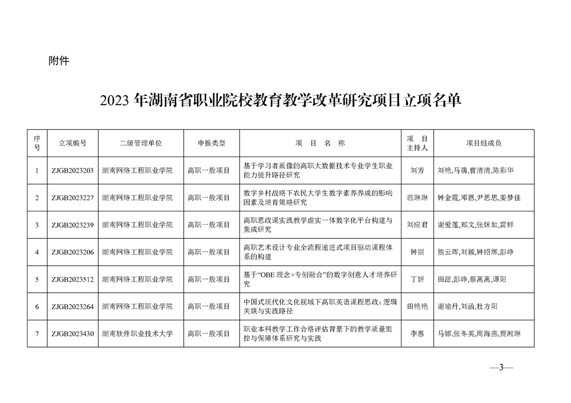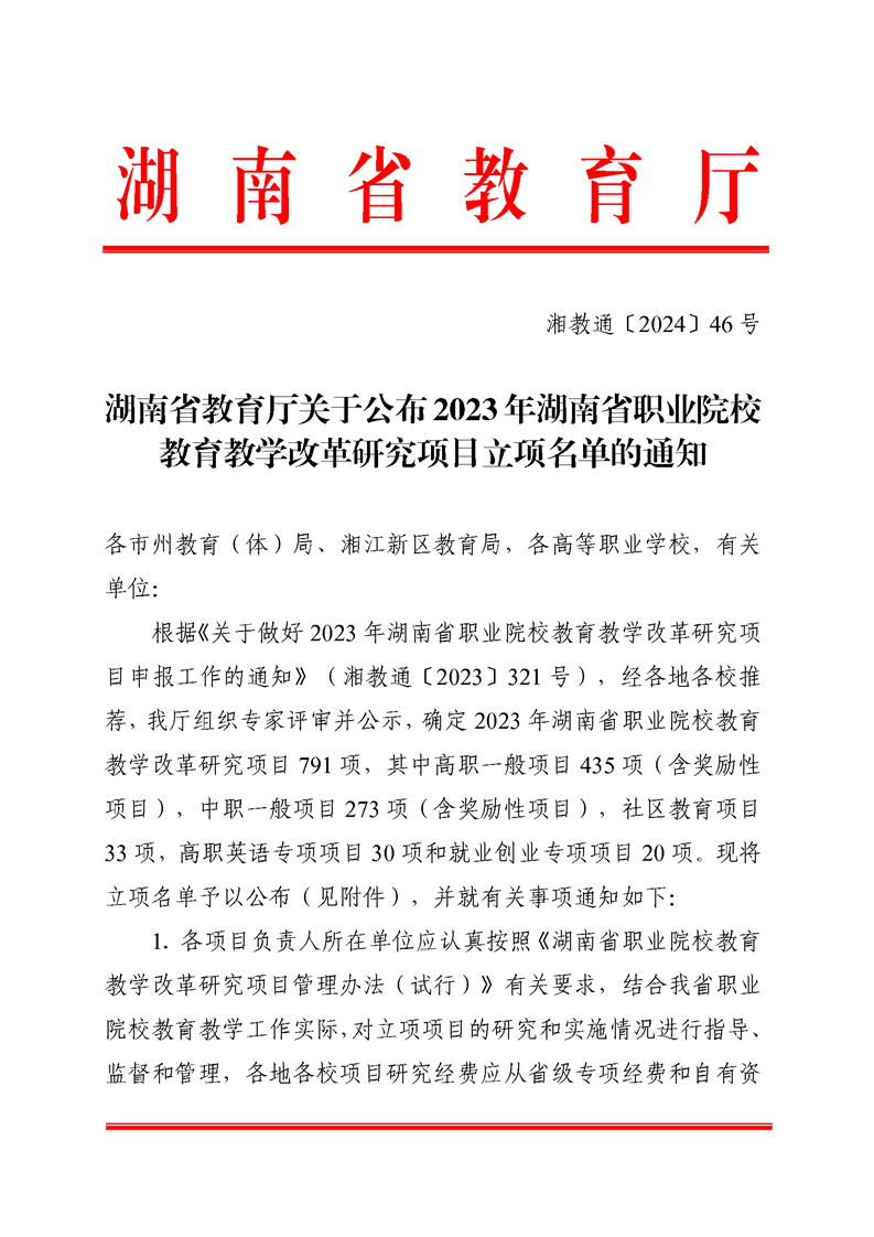 我院立项2023年湖南省职业院校教育教学改革研究1项