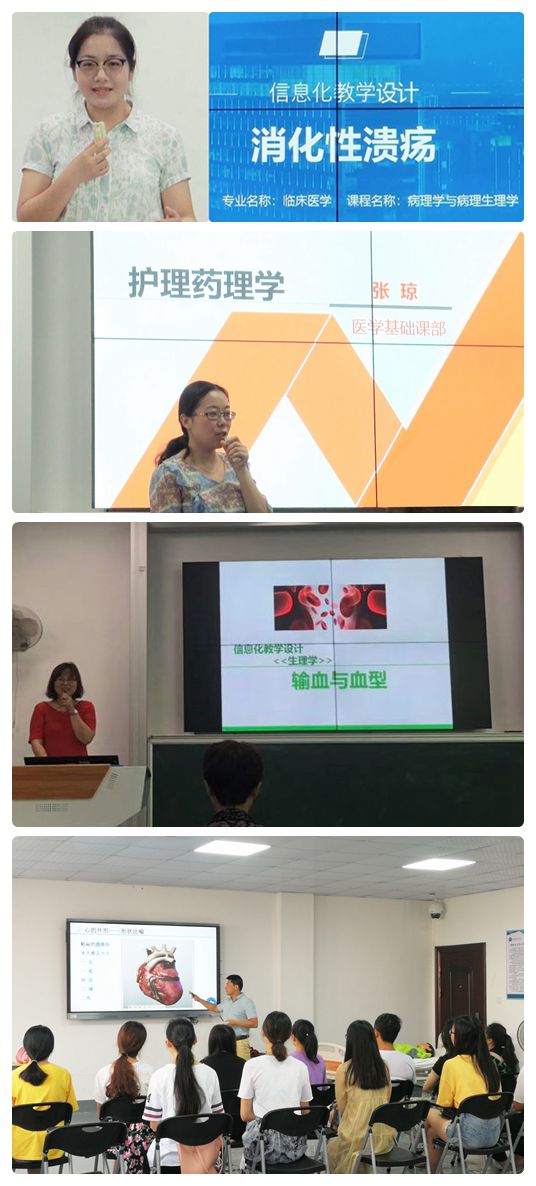 为推进信息化教学工作与课程教学改革,促进信息技术与教育教学深度融合,提高教师教育技术应用能力和信息化教学水平。引导广大教师不断提升教学设计和教学实施水平,提高课程教学质量,6月10日,半岛平台举行了2018年信息化教学设计、信息化课堂教学以及说课竞赛,比赛地点设置在护理楼204(信息化教学设计、说课竞)和临床学院104教室(信息化课堂教学)。我课部艾卫敏、宋志勇、刘婷、张琼四位老师参加了此次比赛。