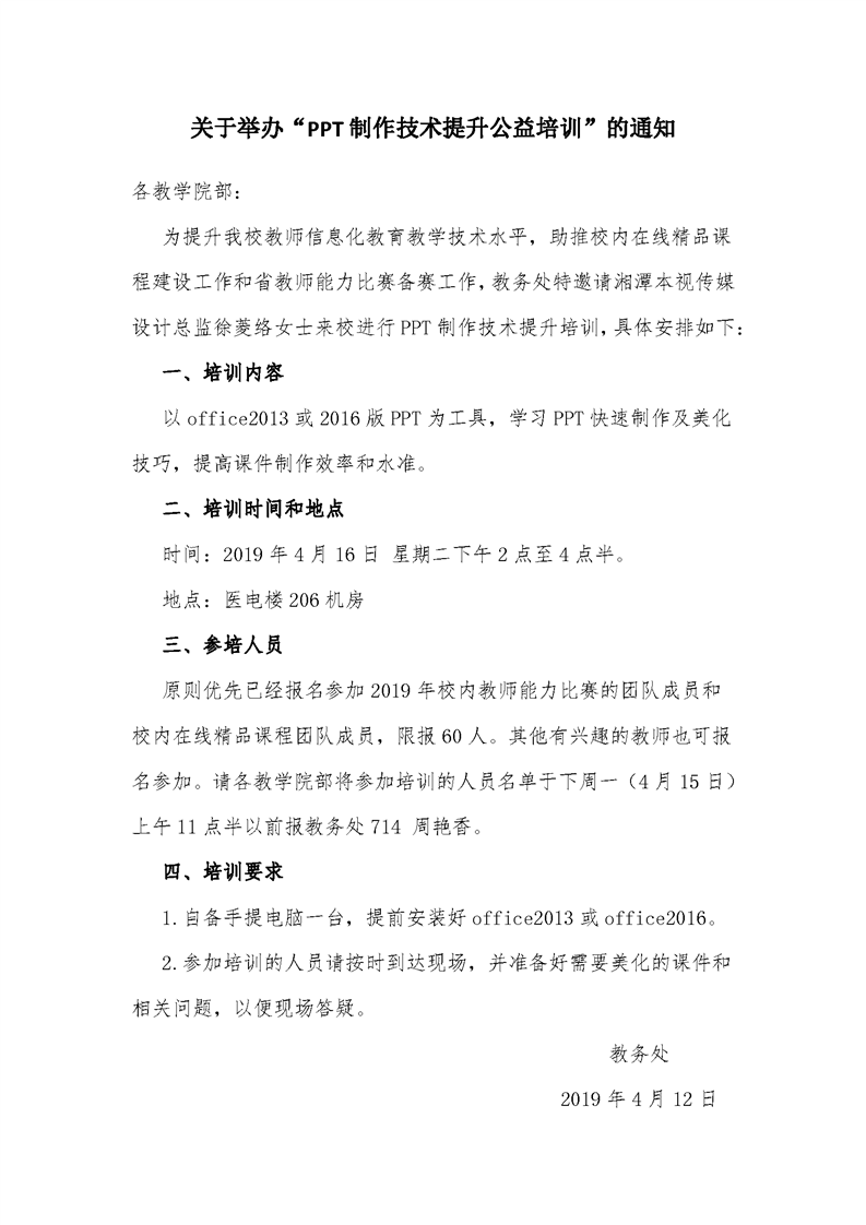转发:关于举办“PPT制作技术提升公益培训”的通知