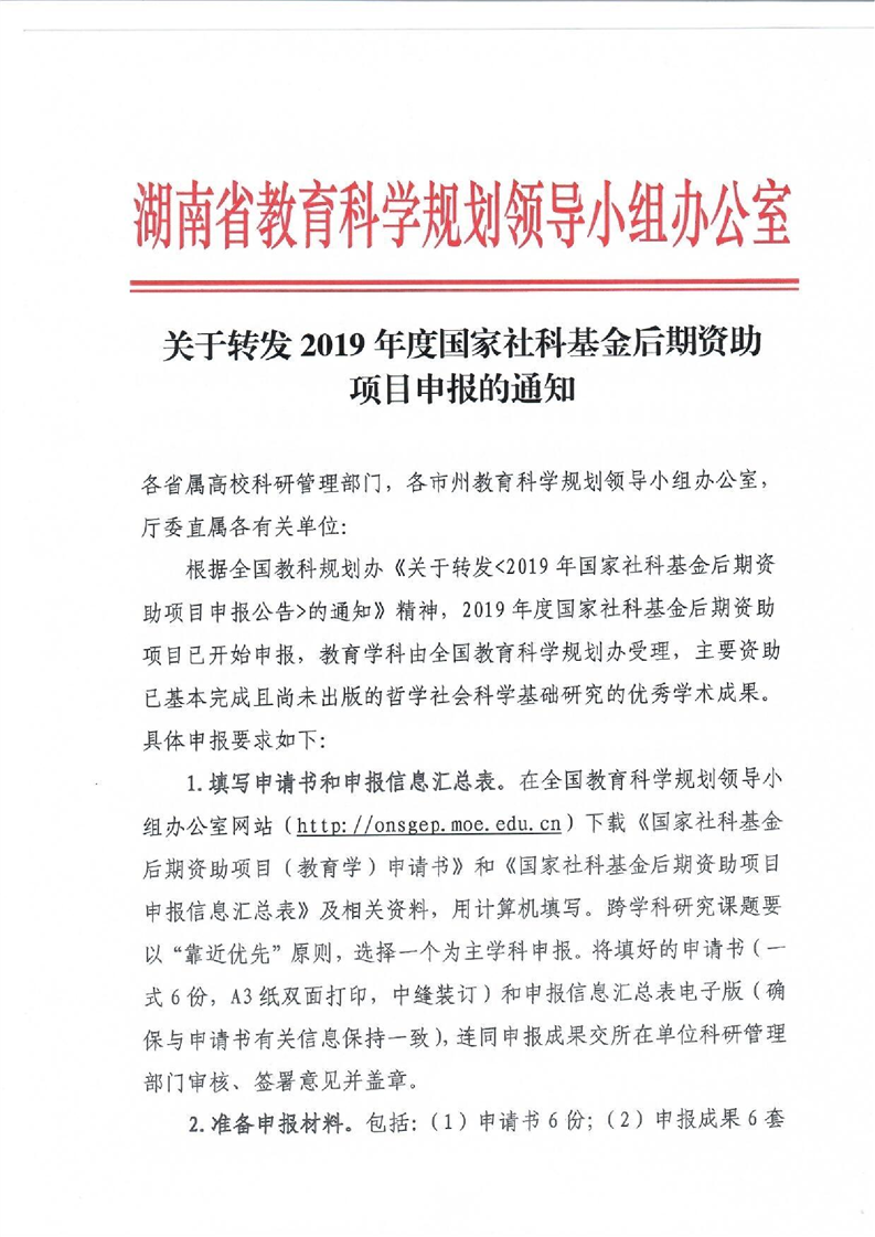 关于转发2019年度国家社科基金后期资助项目申报的通知