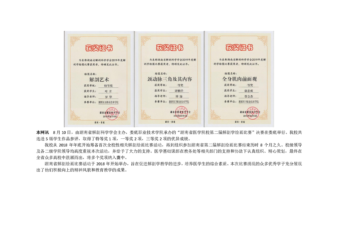 【喜 报】我校学子在湖南省医学院校第二届解剖绘画比赛中喜获佳绩