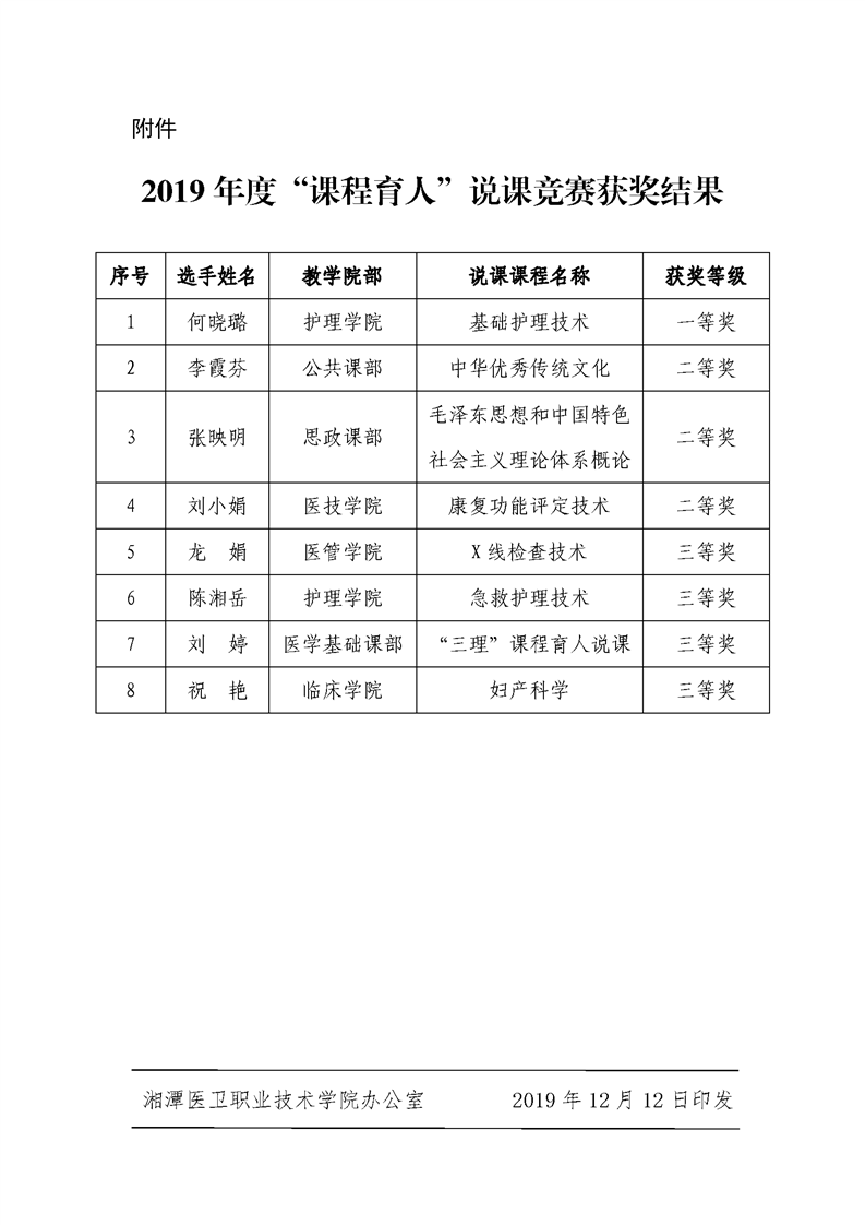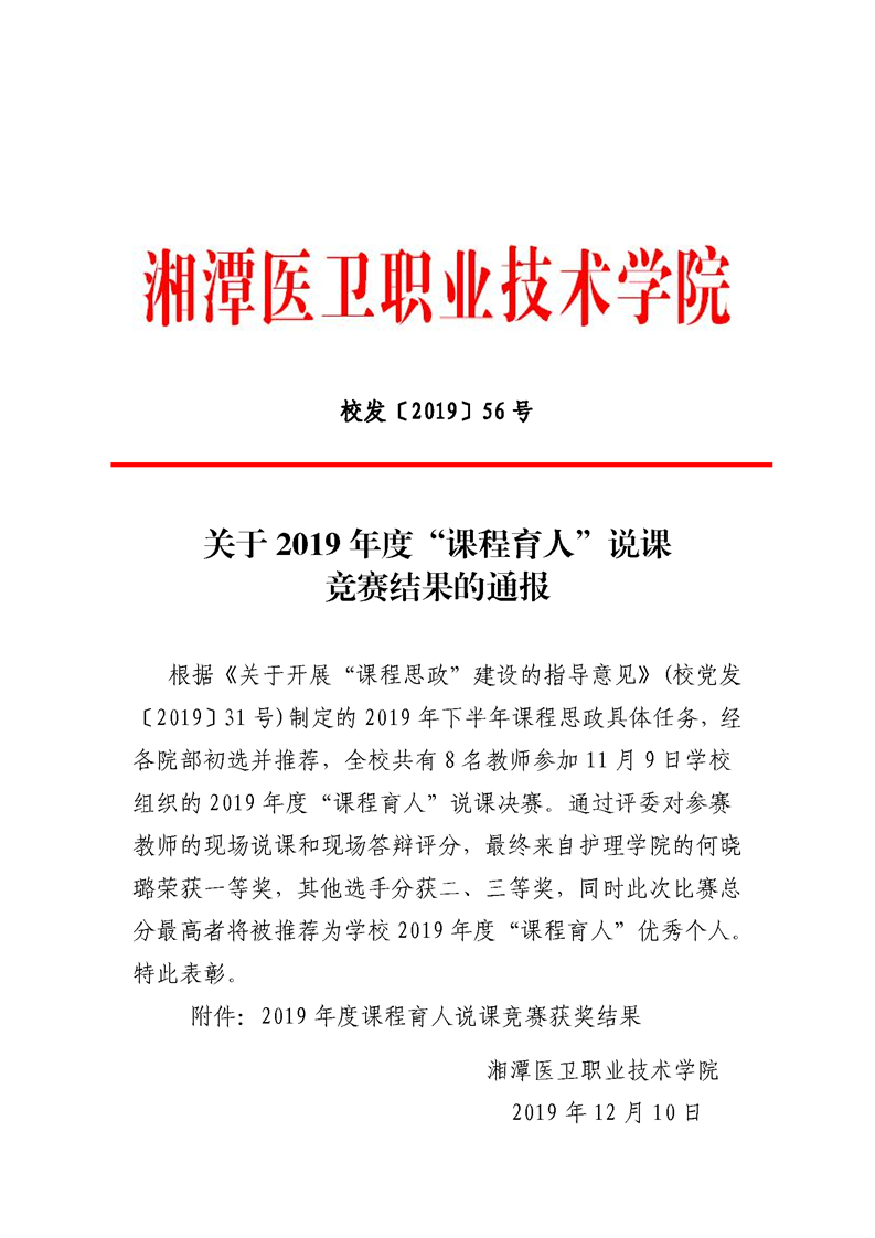 转发《2019年度“课程育人”说课竞赛结果的通报》