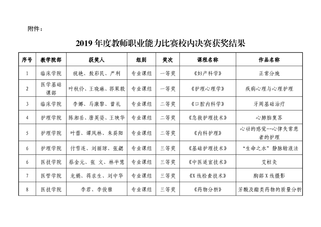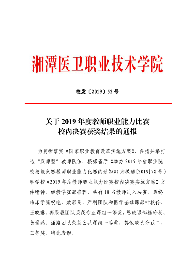 转发《关于2019年度教师职业能力比赛校内决赛获奖结果的通报》