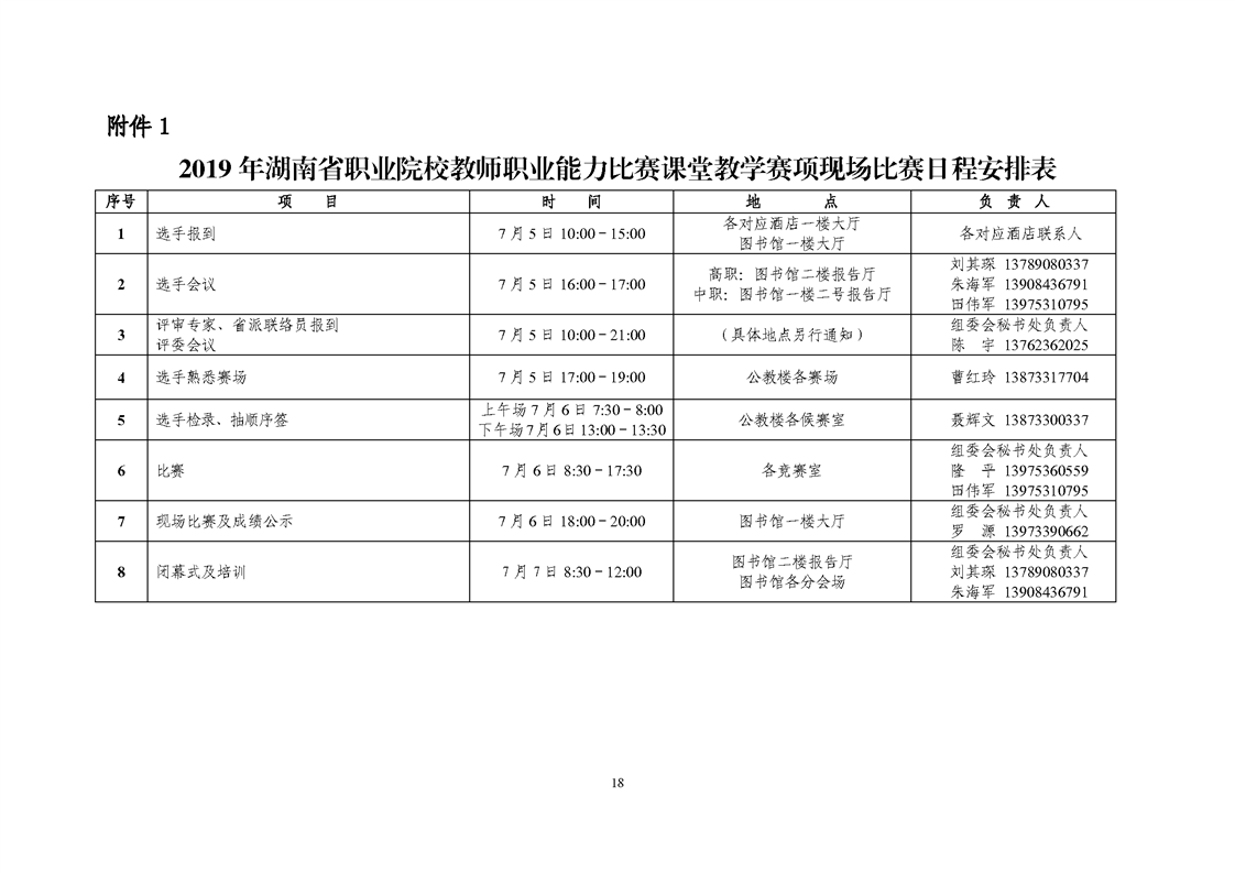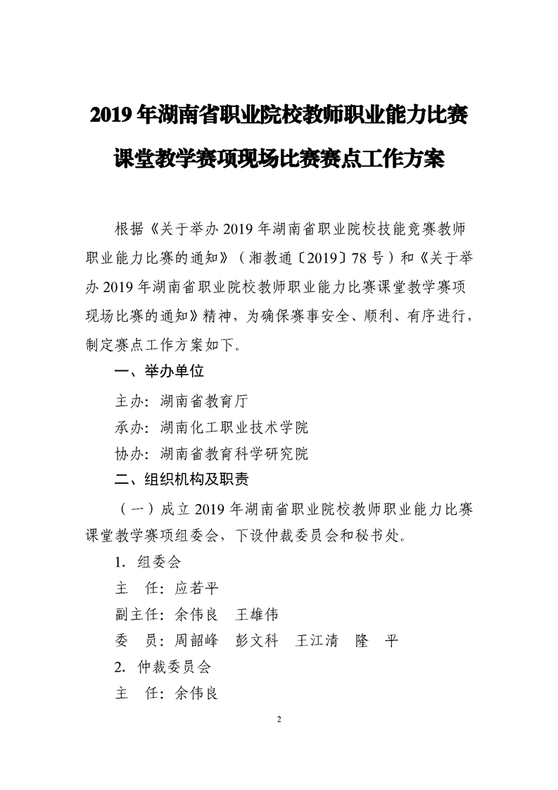 转发《2019年湖南省职业院校教师职业能力比赛课堂教学赛项现场比赛赛点工作方案》