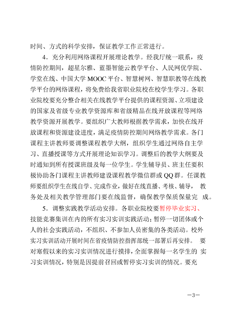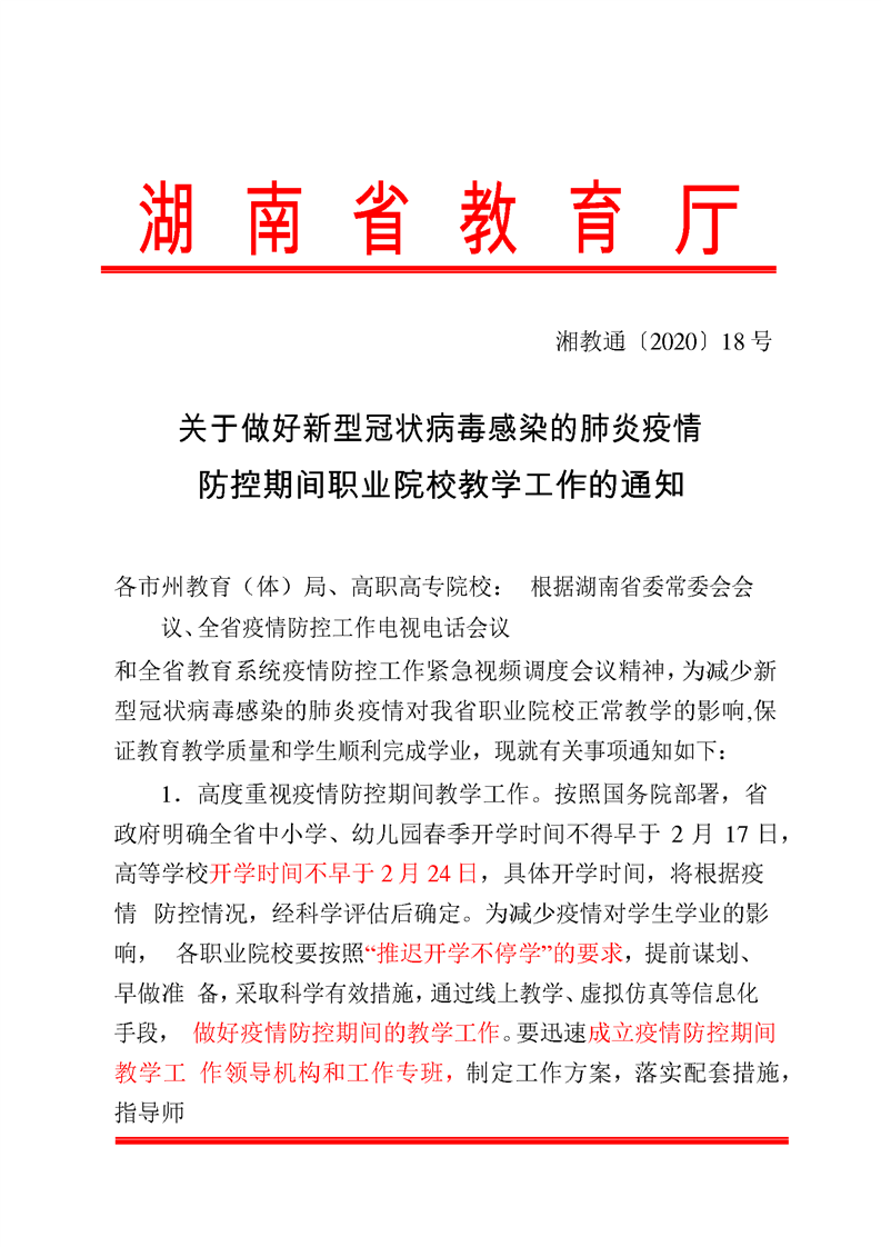 《关于做好新型冠状病毒感染的肺炎疫情 防控期间职业院校教学工作的通知》